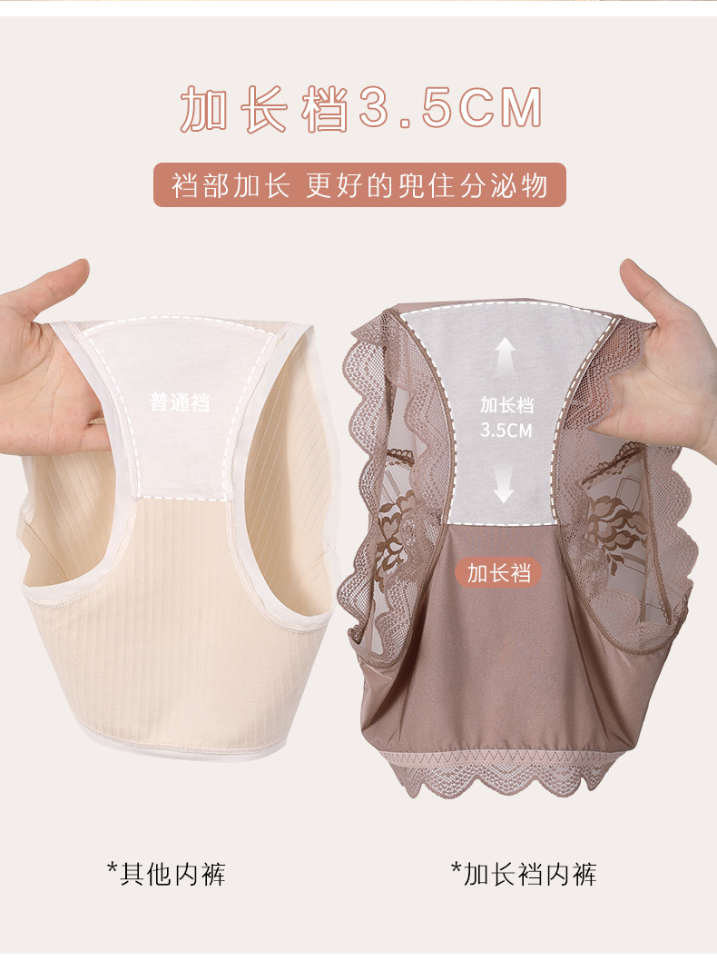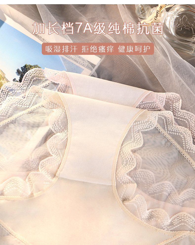 女士纯棉内裤舒适透气棉提花亲肤蕾丝花边二合一中腰四角裤加大码