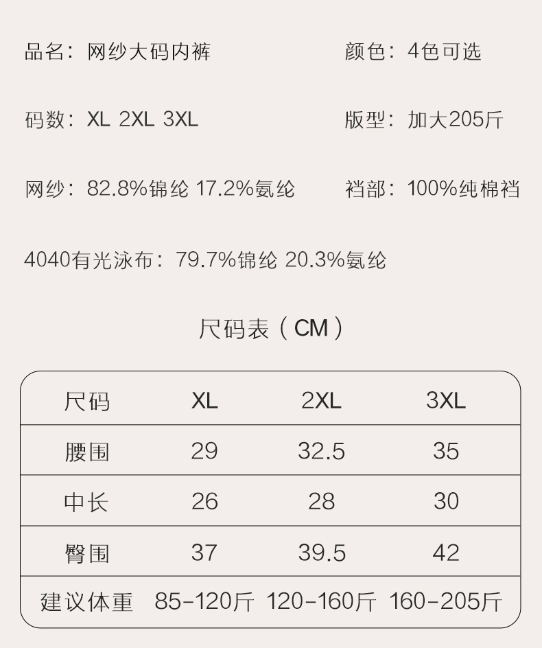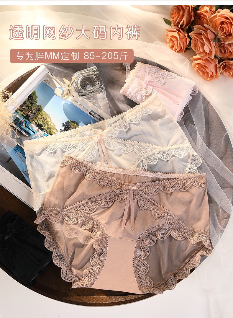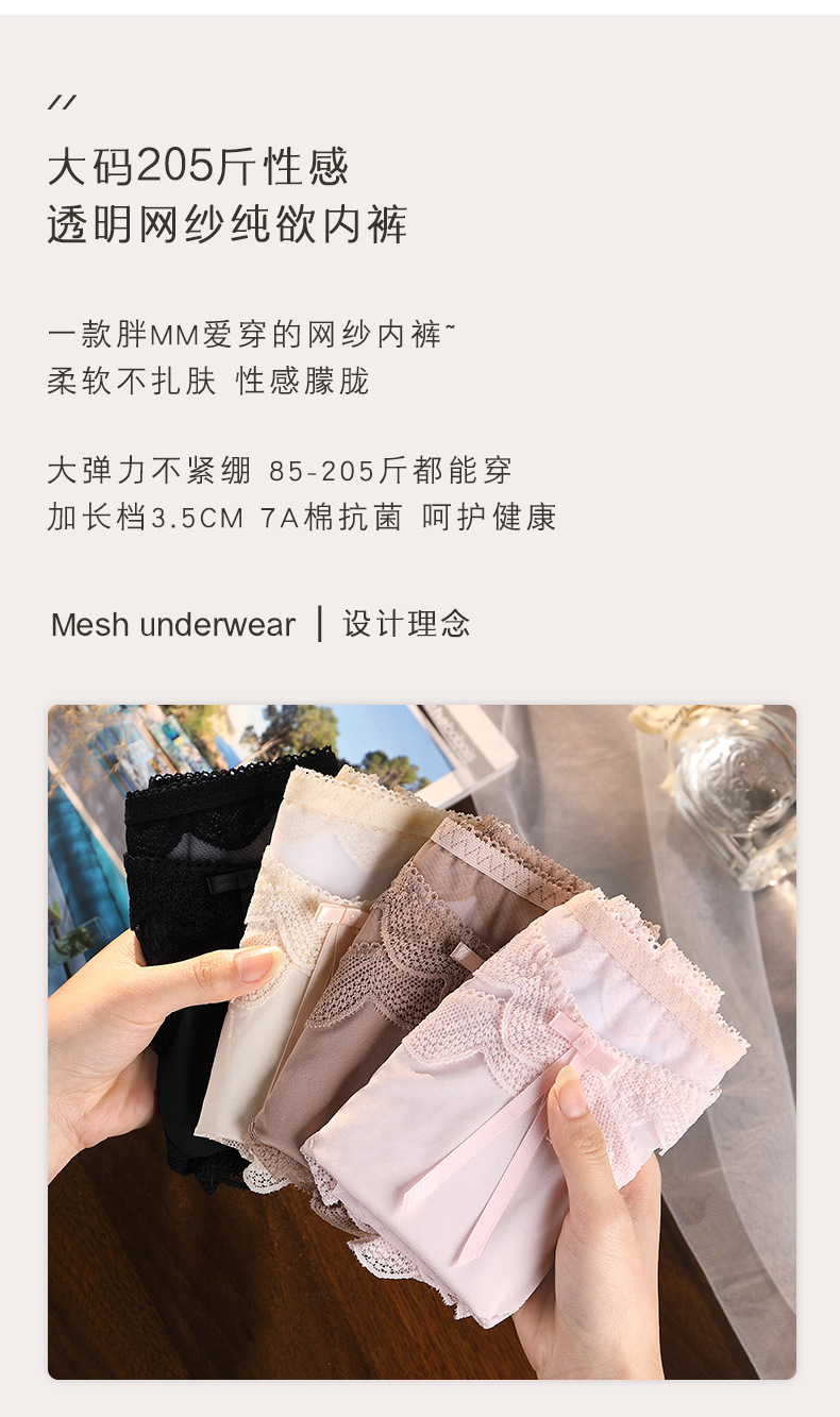 セクシーな純粋な欲透明なネット糸の大きいサイズの下着の女性の200斤の太っているmmの純綿の延長の股の通気性の三角のショートパンツ