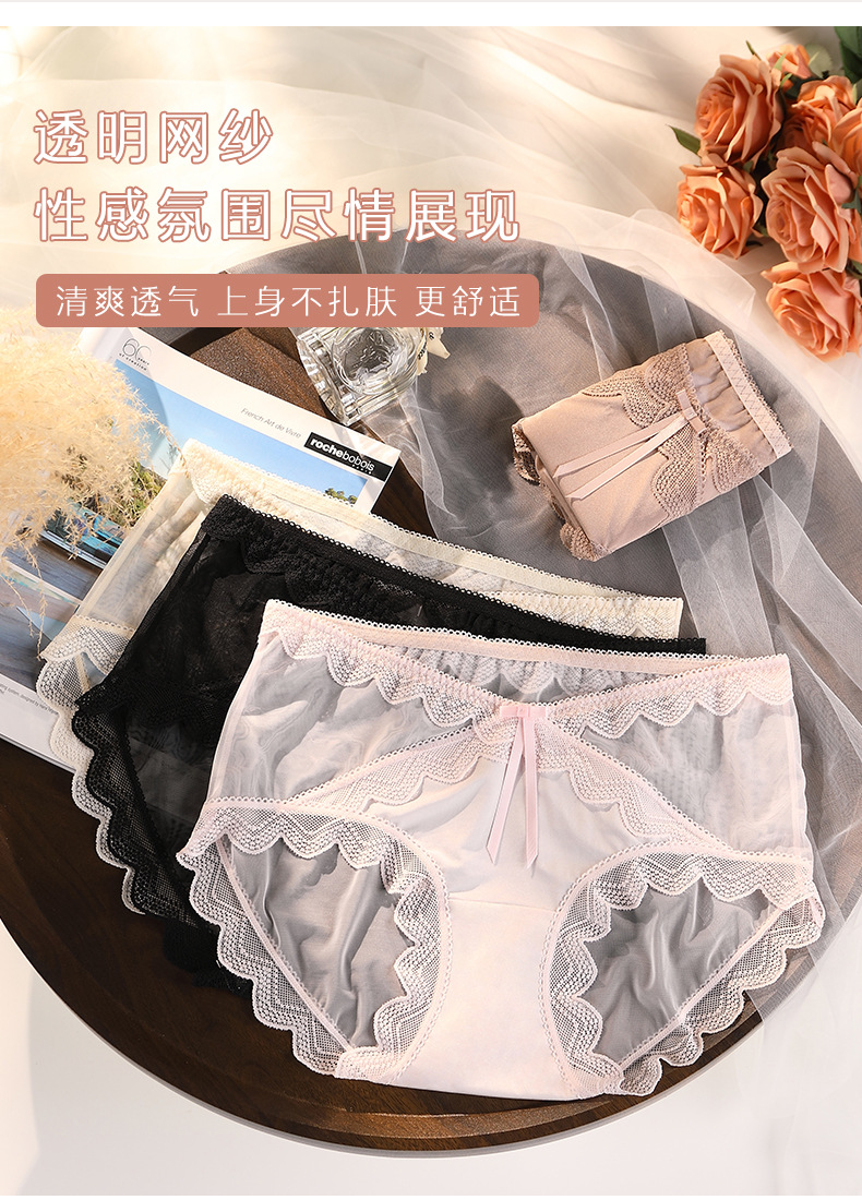 センスアルセクシー野良猫! 誘惑レースのt字のズボンの透かし彫りのネットの糸の純綿の股のセクシーな透視の下着