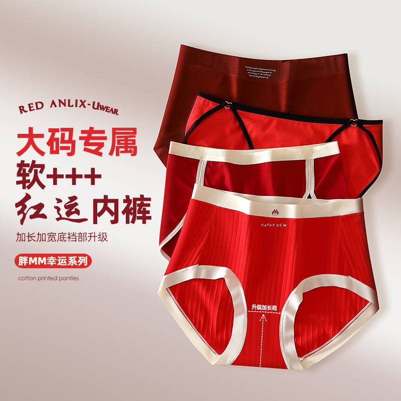 2026迎新年鸿运大码女士内裤高弹不勒喜庆加大280斤胖MM三角底裤