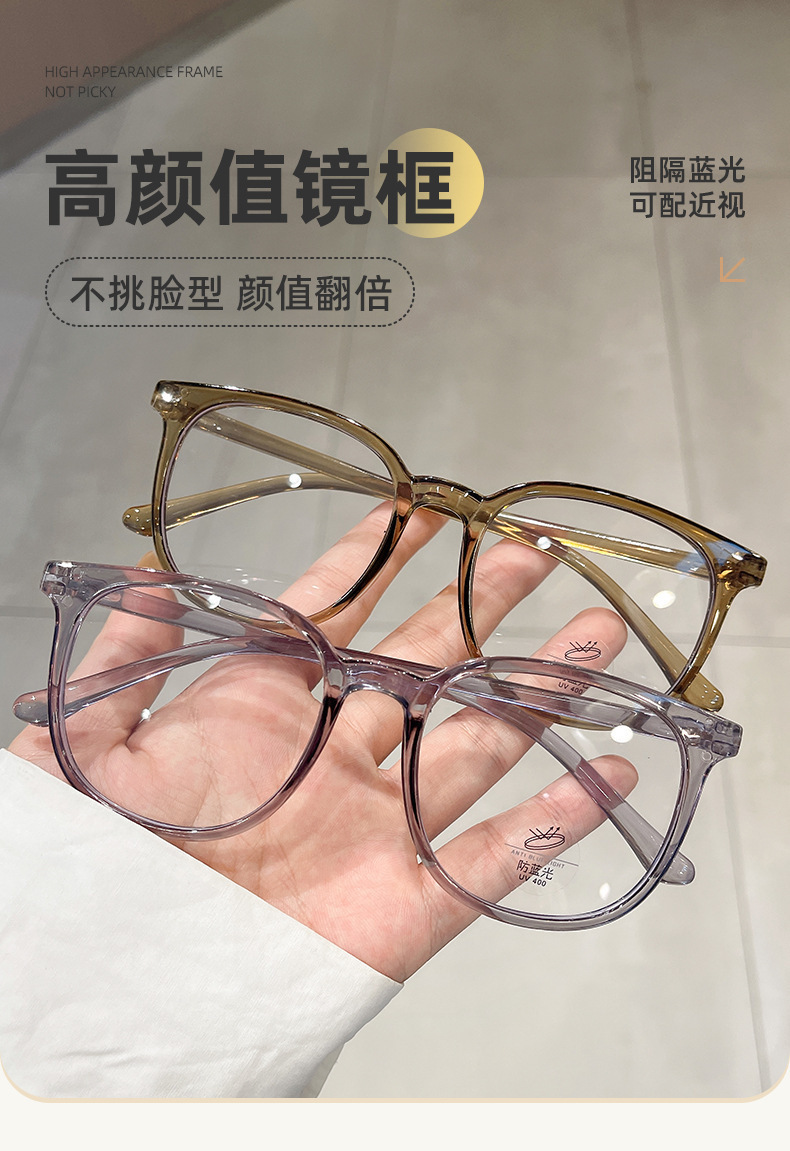 2024韓国版すっぴん透明フレーム眼鏡ファッションネット赤同モデルブルーレイ防止携帯電話パソコン平光鏡