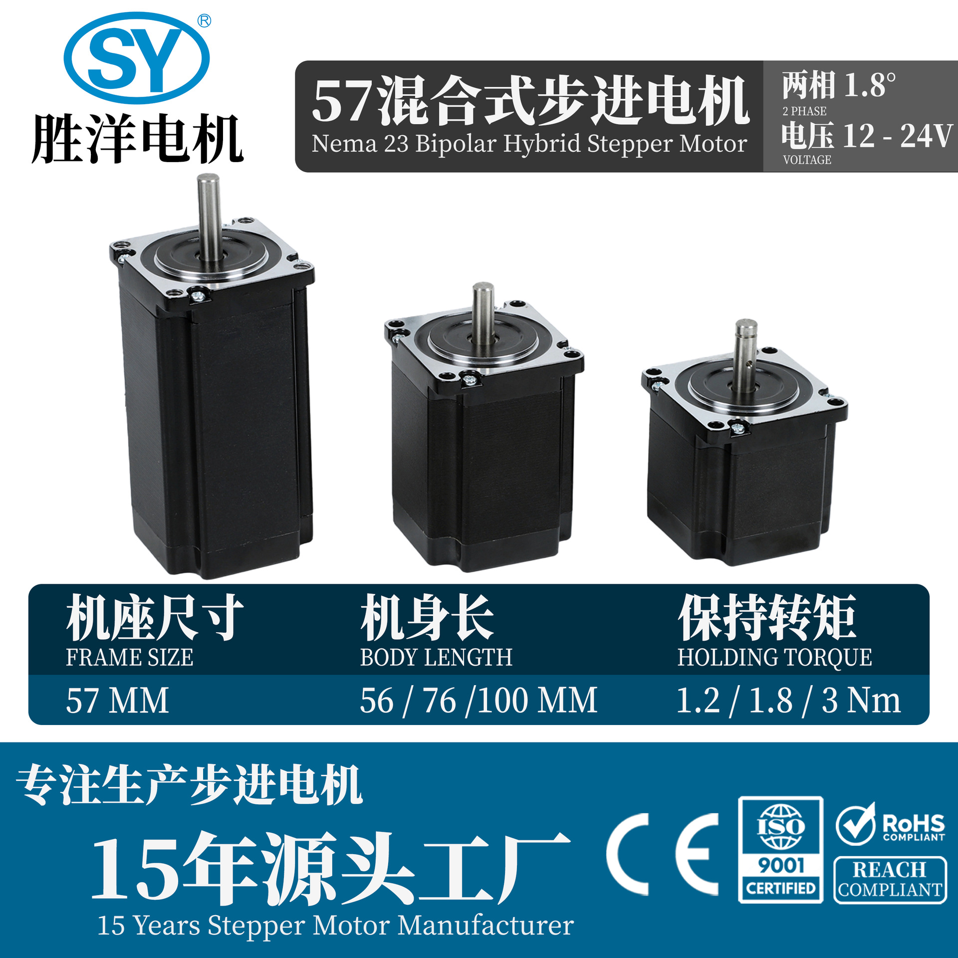 现货57电机Nema 23 56MM 76MM 100MM 1.2Nm 3Nm CNC步进电机