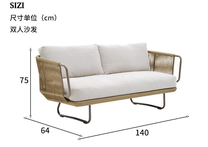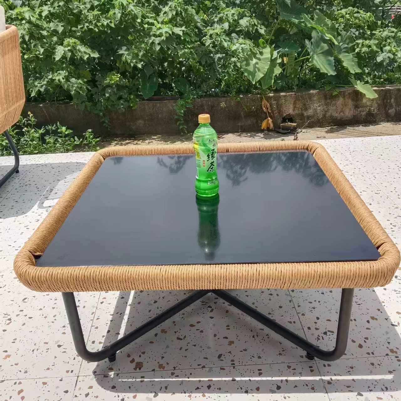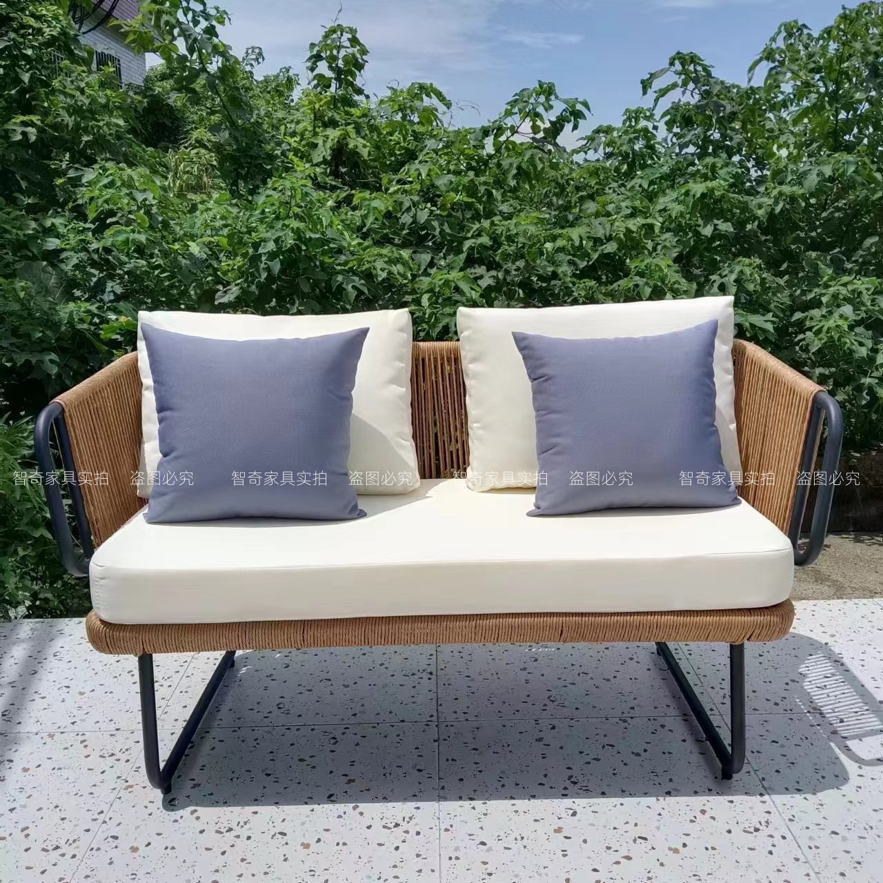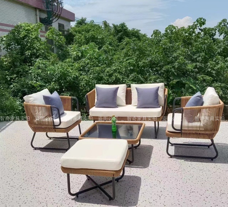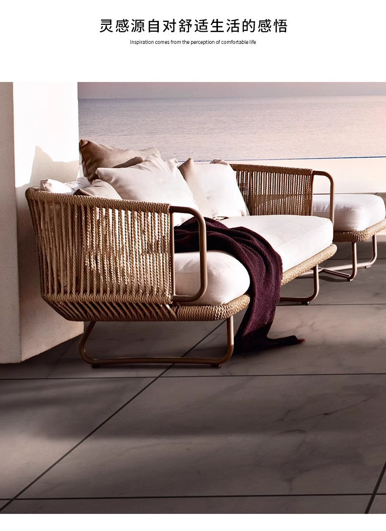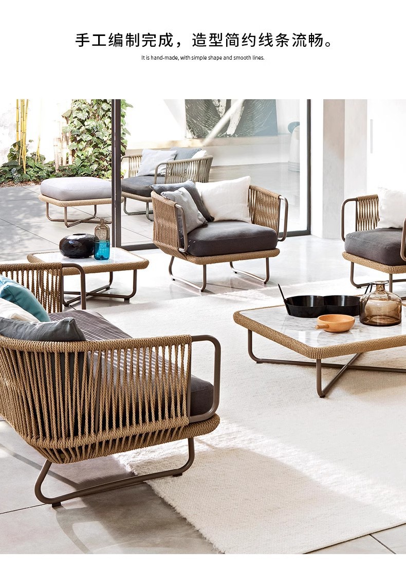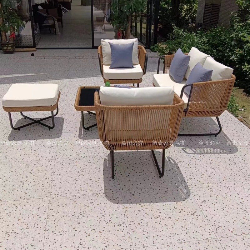 屋外チーク籐椅子ソファ中庭B&Bガーデンバルコニーレジャー籐防水編組ロープ組み合わせ屋外家具