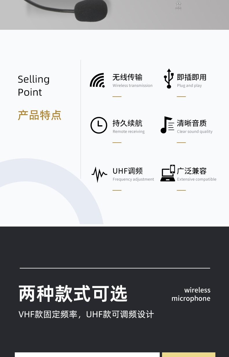 UHF無線ヘッドマイク小蜂教師拡声器音響叫びマイク一拉二静電容量麦