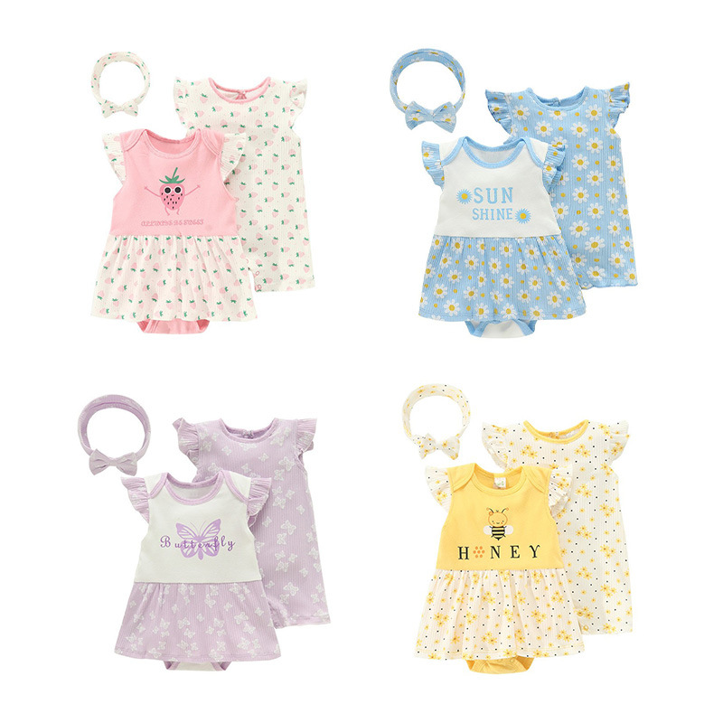 0〜1歳の幼児用スカート、女の子用3点セット、ボクサーパンツ、5色展開、淘宝雲単品、半袖