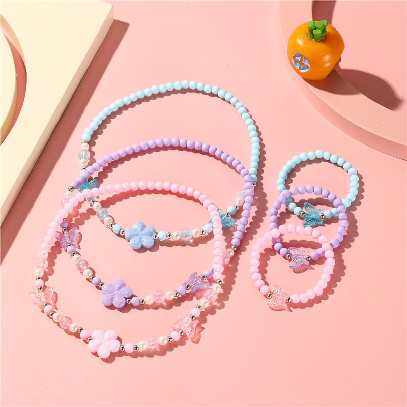 新しい国境を越えた子供のネックレスかわいいアニメの花蝶の鎖キャンディー色のビーズの女の子のアクセサリーセットの王女