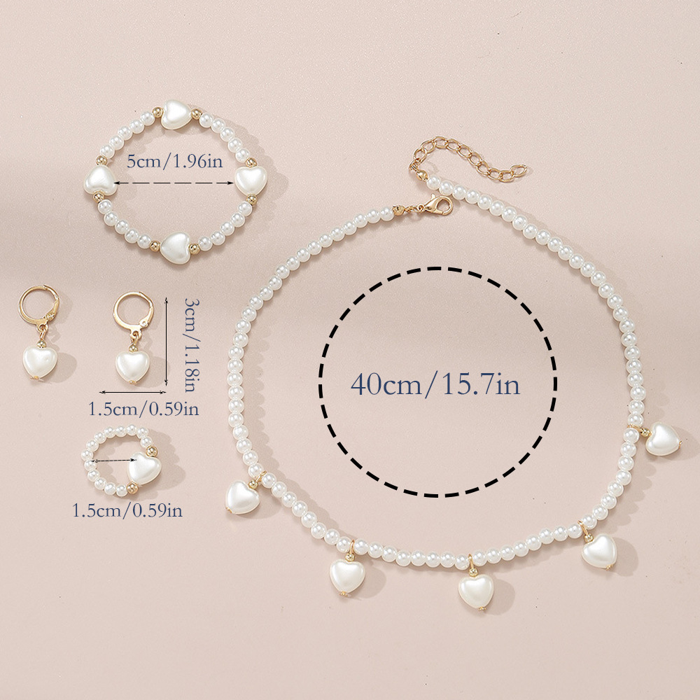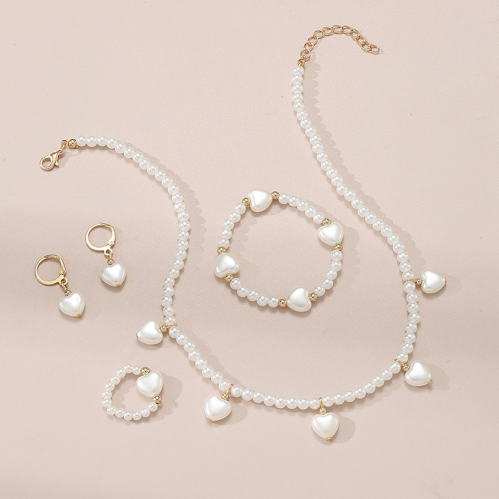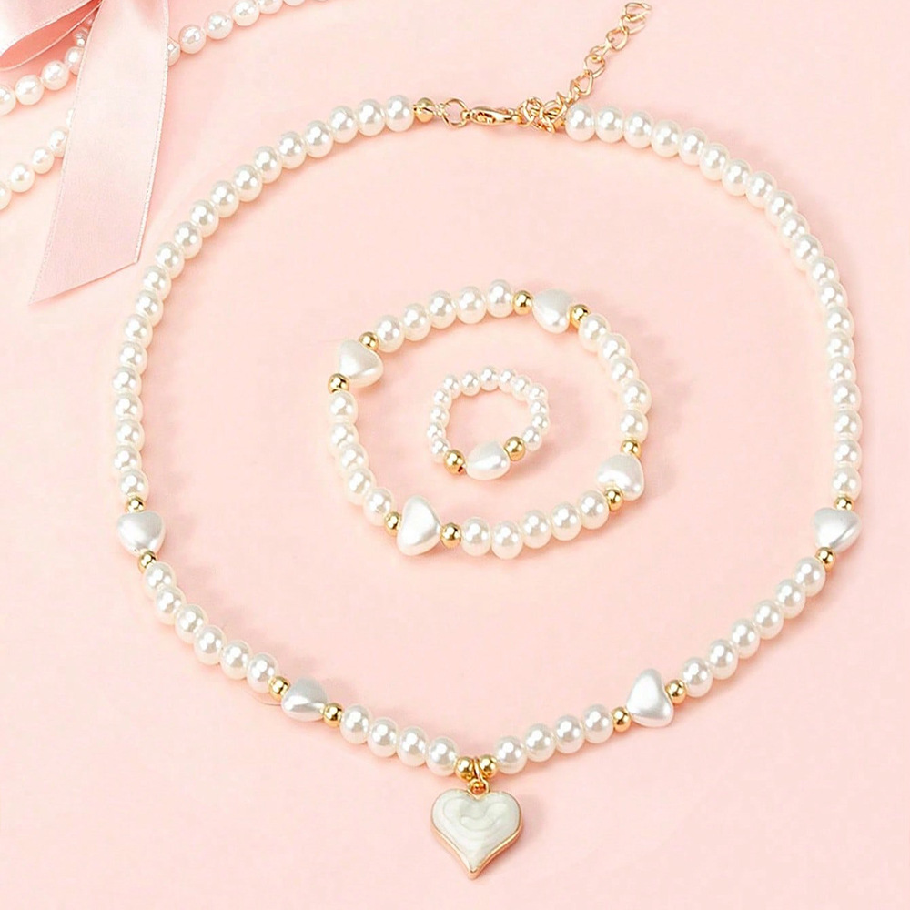 跨境儿童珍珠首饰套装爱心吊坠项链手链戒指甜美风儿童配饰项链