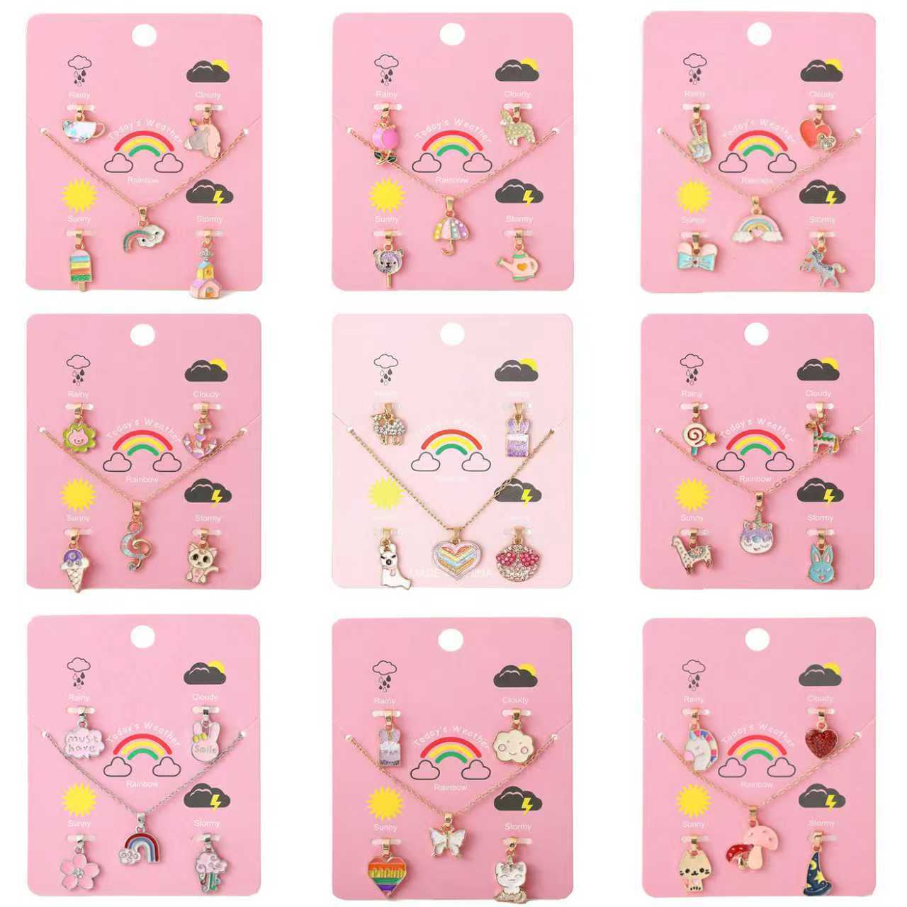 跨境儿童项链 卡通爱心彩虹diy吊坠项链 合金滴油独角兽首饰套装