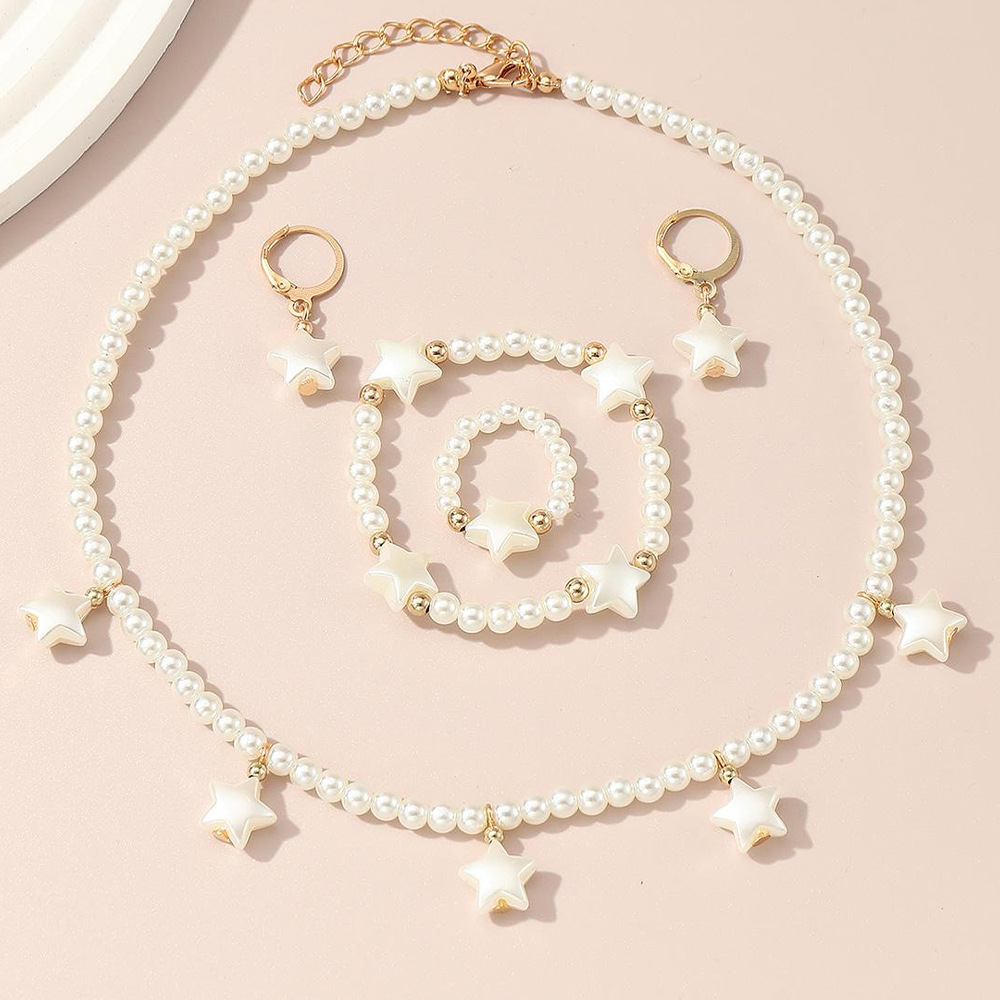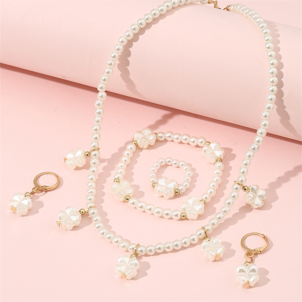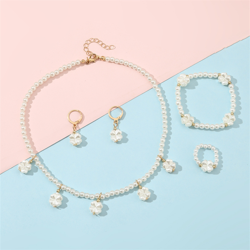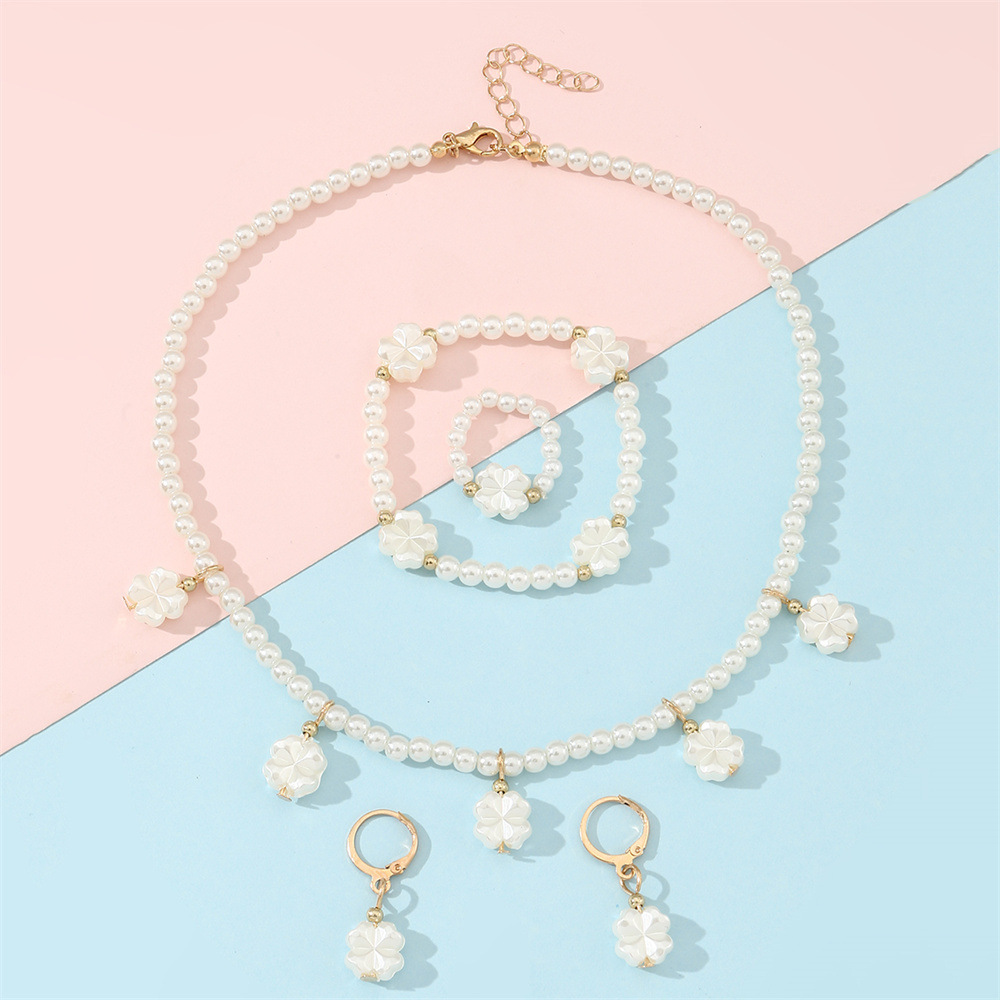 クロスボーダー児童高級真珠ジュエリー女性軽豪華小衆デザイン感ネックレスブレスレット指輪イヤリングアクセサリーセット