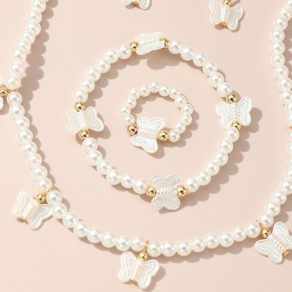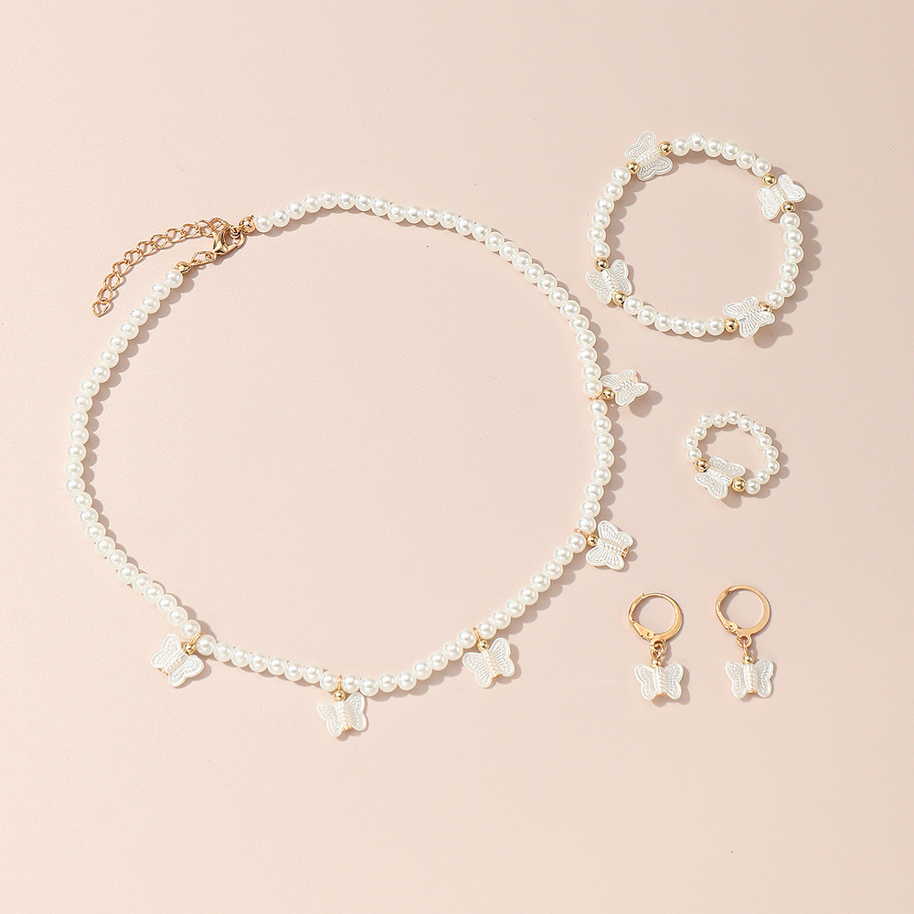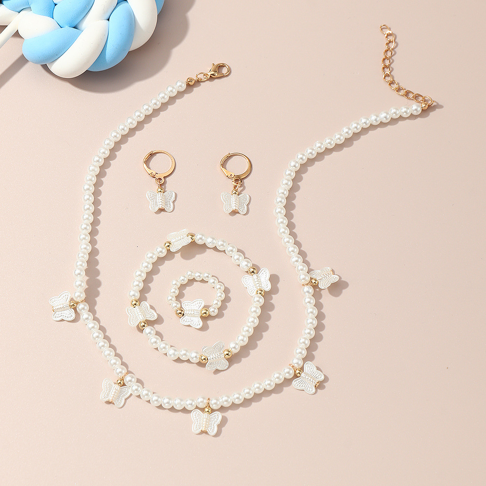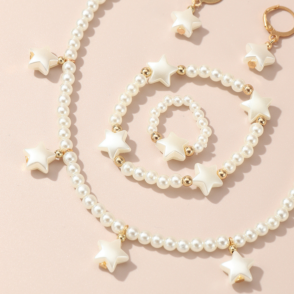 クロスボーダー児童高級真珠ジュエリー女性軽豪華小衆デザイン感ネックレスブレスレット指輪イヤリングアクセサリーセット