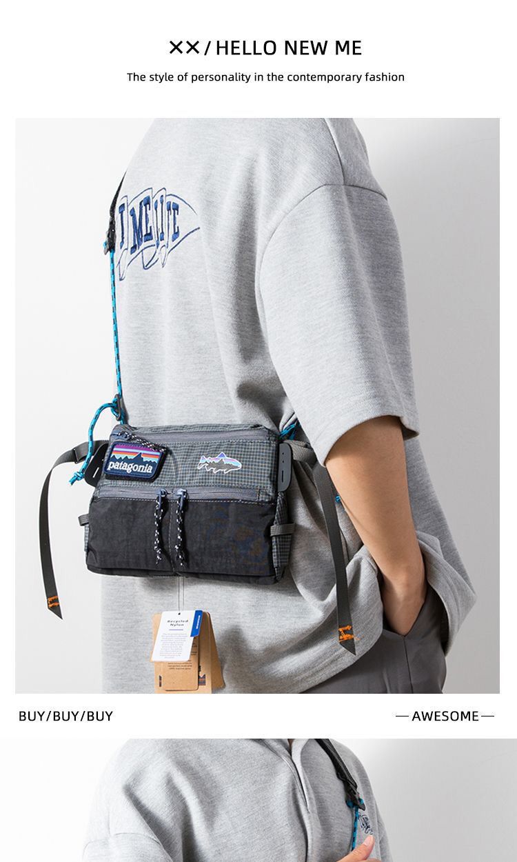 撞色钓鱼斜挎包潮牌街头单肩包男女户外防水小包多功能机能手机包