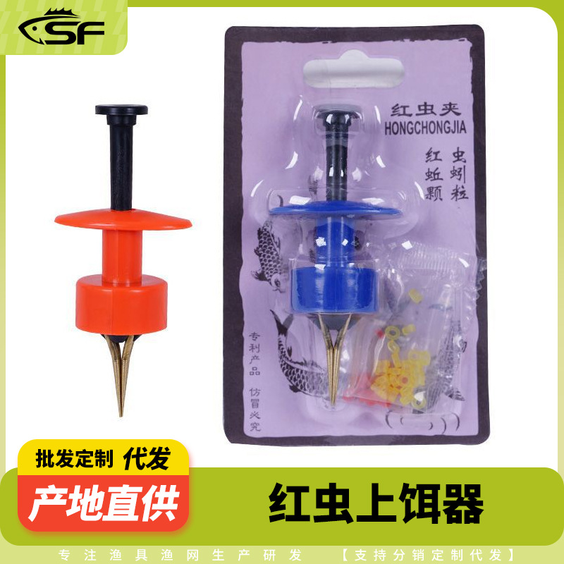 赤い虫は皮筋の粒子を挟んで、赤い虫の上で餌器の粒子のクリップを掛けて、生きている餌を加速して縛ります。
