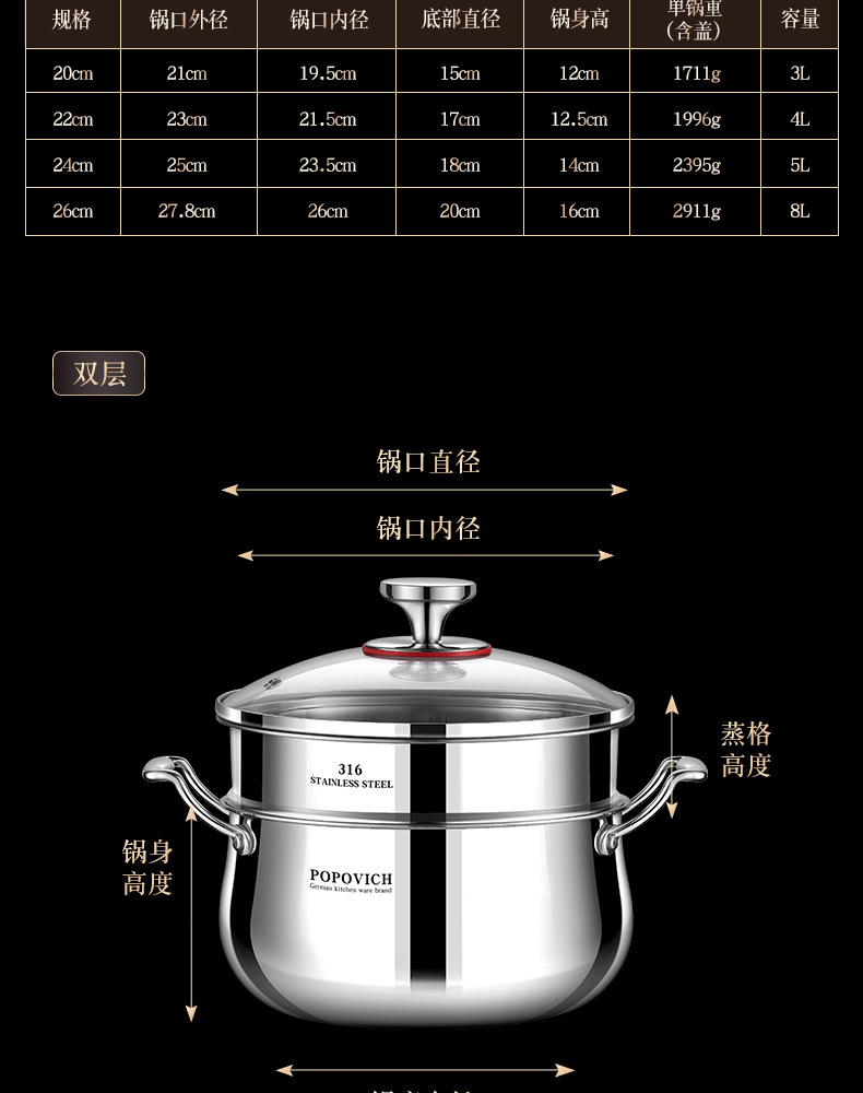 316 【ドラム型多層鋼】スープポット 20cm,316 【ドラム型多層鋼】スープポット 22cm,316 【ドラム型多層鋼】スープポット 24cm,316 【ドラム型多層鋼】スープポット 26cm,316 【ドラム型多層鋼】スープポット20cm+蒸し器,316 【ドラム型多層鋼】スープポット22cm+蒸し器,316 【ドラム型多層鋼】スープポット24cm+蒸し器,316 【ドラム型多層鋼】スープポット26cm+蒸し器