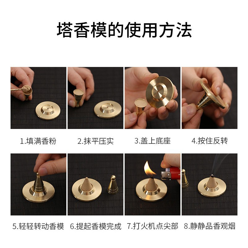 純銅塔模塔香製作金型レトロ錐香檀香粉塔香炉セットメーカー香道用品工具