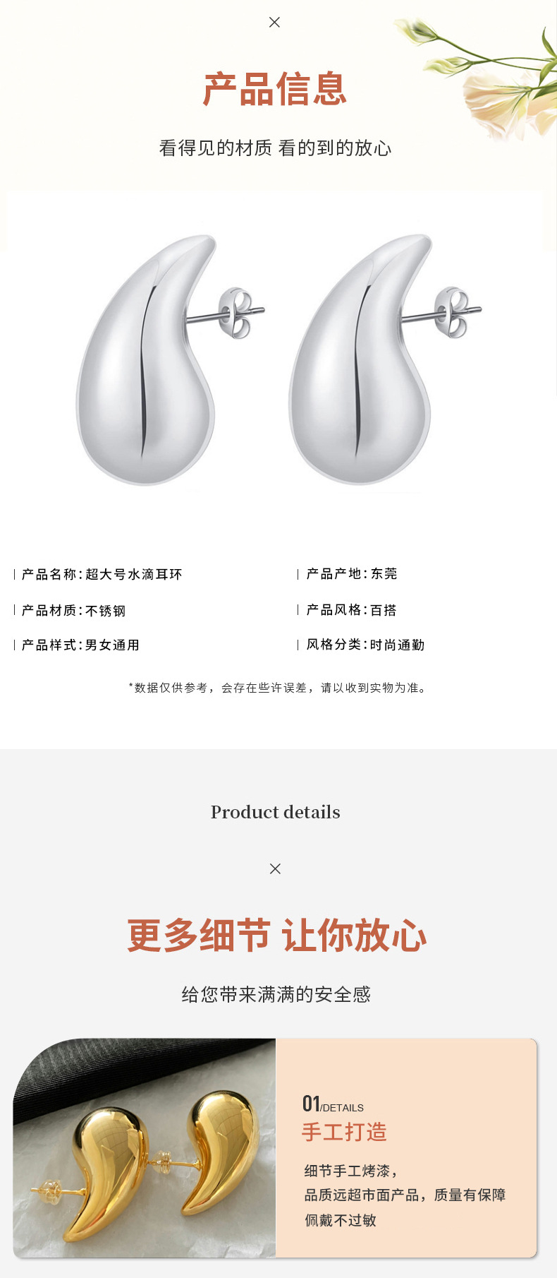 国境を越えた特別な特大ウォータードロップ中空イヤリング女性のティアドロップステンレス鋼イヤリングメッキ 18 K イヤリング卸売