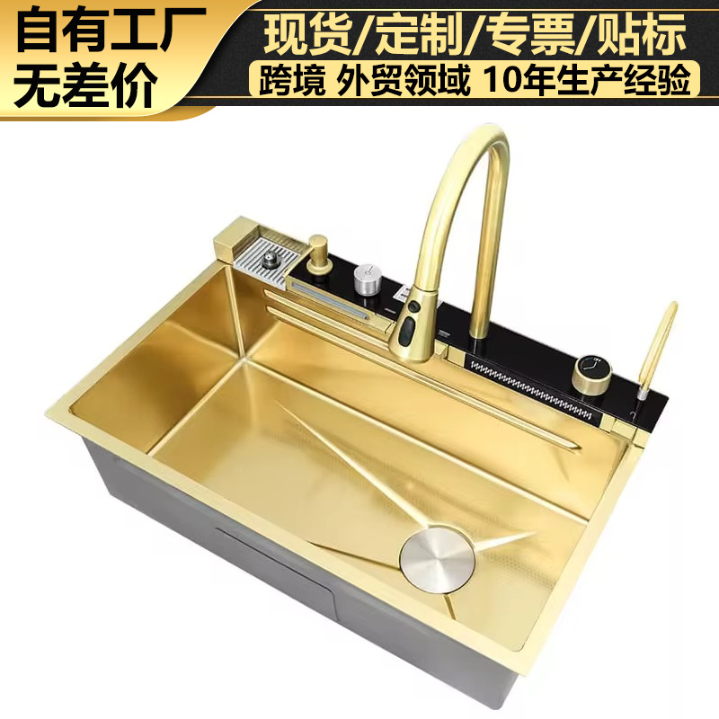金色クジラ水槽一体大単槽液晶ディスプレイ銅蛇口キッチンステンレス304野菜鉢