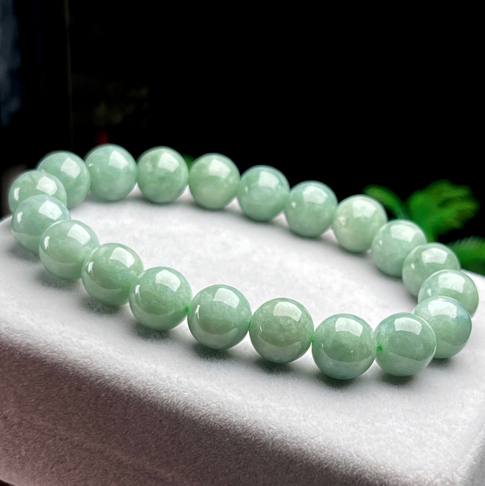 ミャンマー産約10MM氷底豆緑丸玉手串天然A級翡翠ブレスレット四会翡翠工芸品卸売