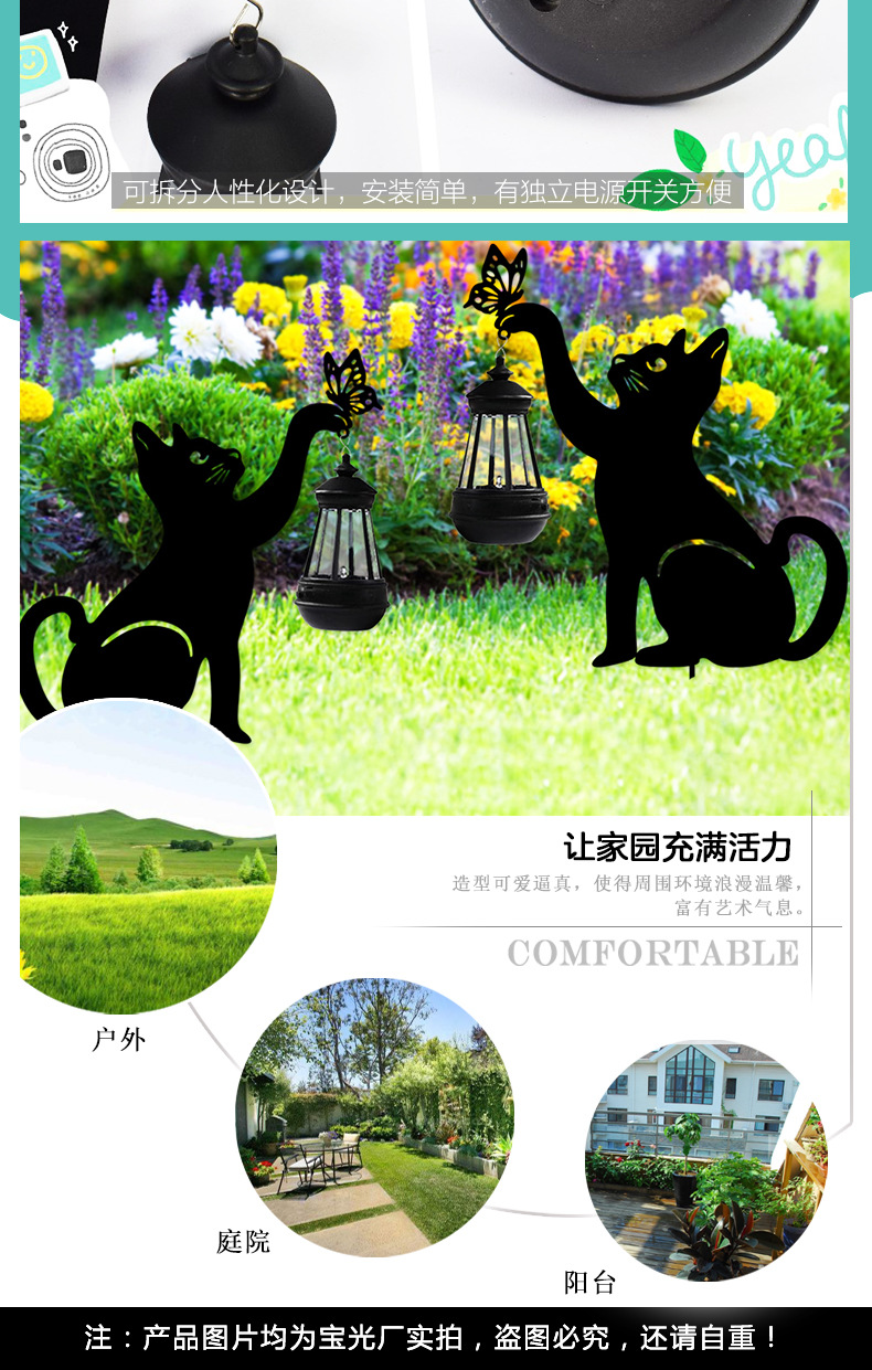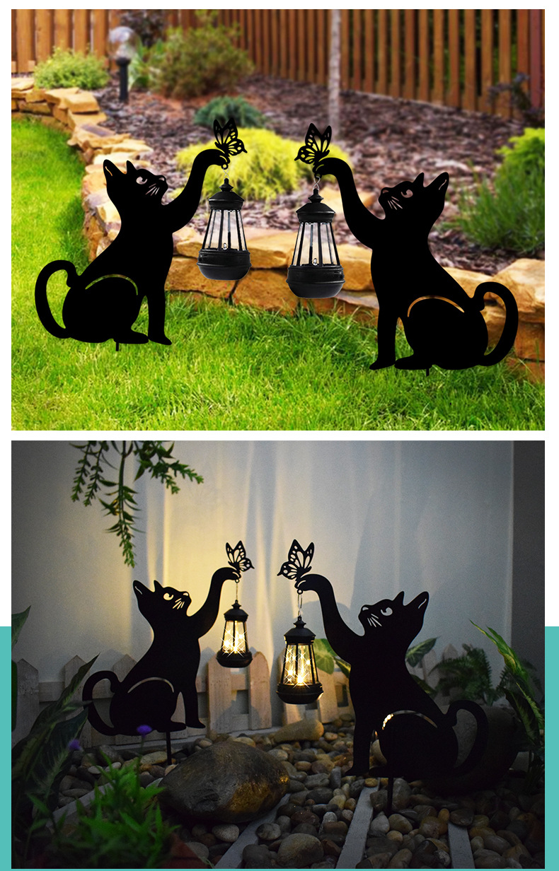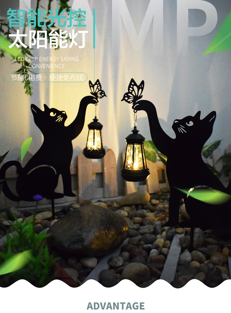 国境を越えた屋外家庭用防水芝生に鉄芸猫動物型庭園庭園装飾太陽灯を挿した