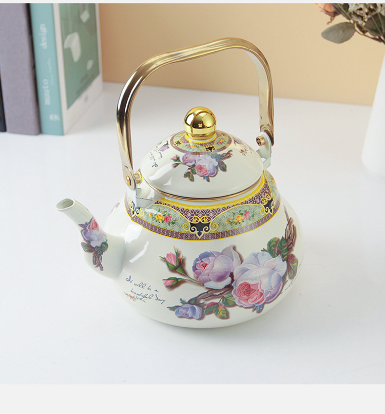 レトロ厚いエナメルエナメルポットヨーロッパ式エナメルティーポット手提げポット湯たんぽ鳥語花の香りポット対外貿易輸出
