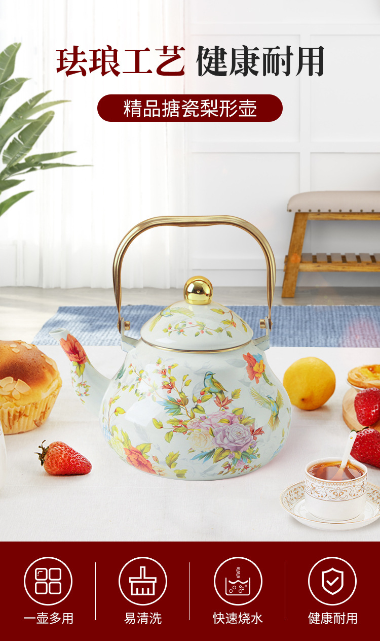 対外貿易輸出ポットエナメルポット金柄梨形ポット冷水ポット鋼柄ポットエナメルポット台所