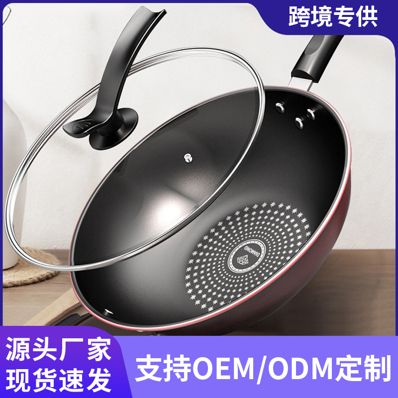 【ドイツクリスタルダイヤモンドノンスティック中華鍋】中華鍋ノンスティック鍋家庭用無油煙鍋電磁調理器ガスストーブ