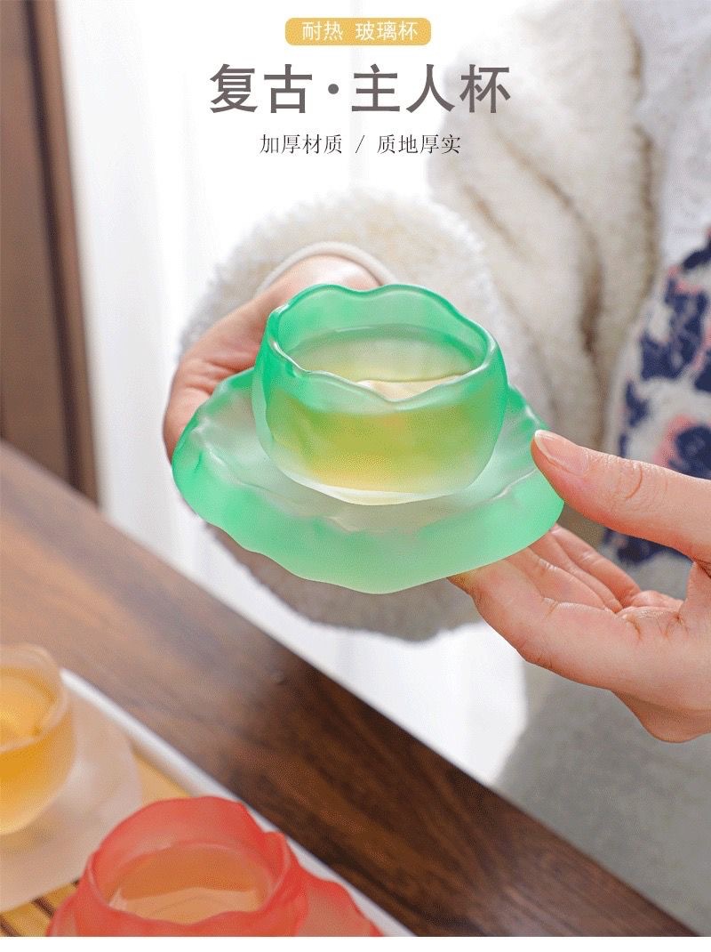 日本冷凍焼釉マスターカップシングルカップグラデーションカラーカンフーティーセットガラス断熱パッドライト高級ティーセット卸売