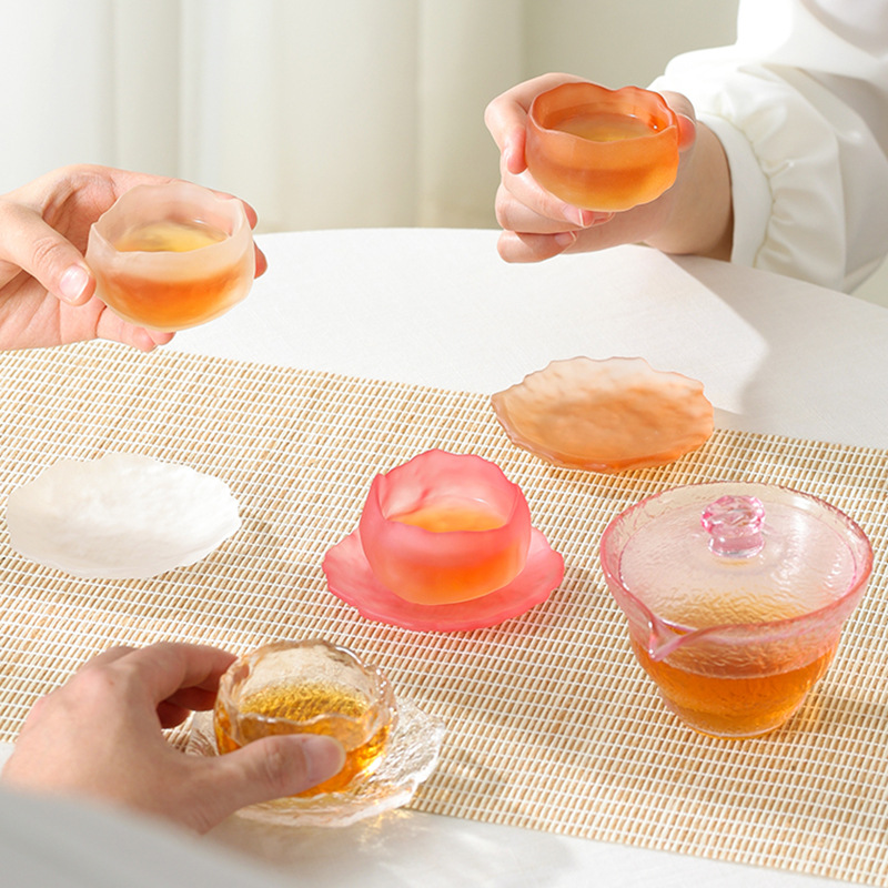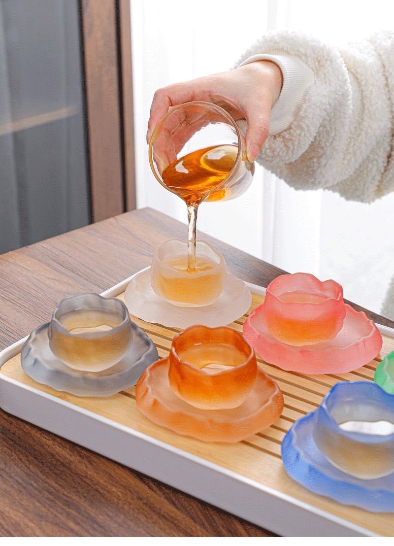 日本グラデーション釉蓮カップティーガラス小さなティーカップマスターカップ家庭用酒カップカンフーティーセット卸売