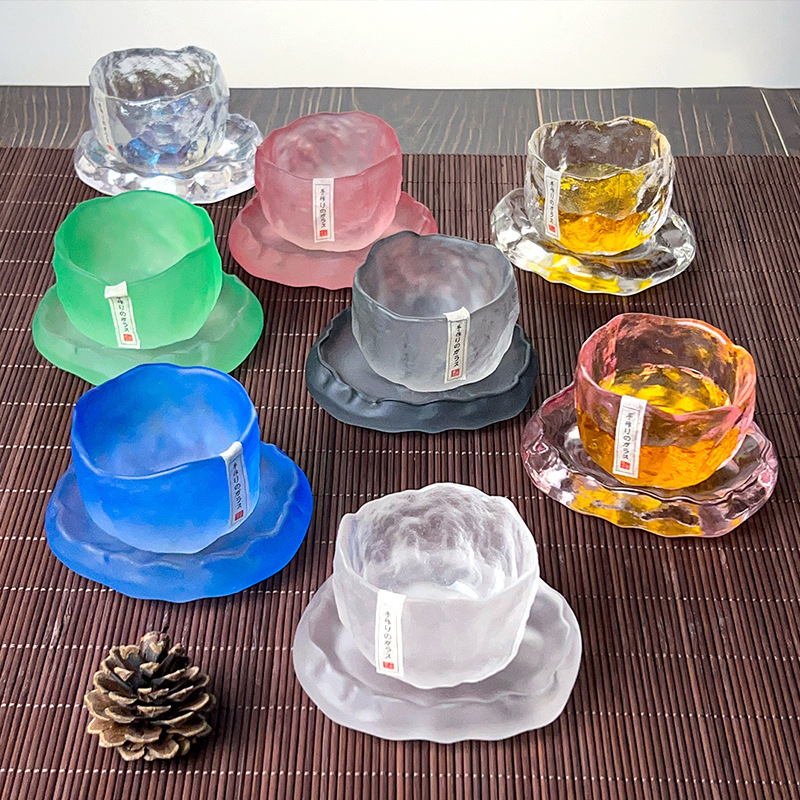 初雪瑠璃ティーカップ上神杯高颜値日本式雪釈杯透明フロスト品茗杯手作りガラスコップ