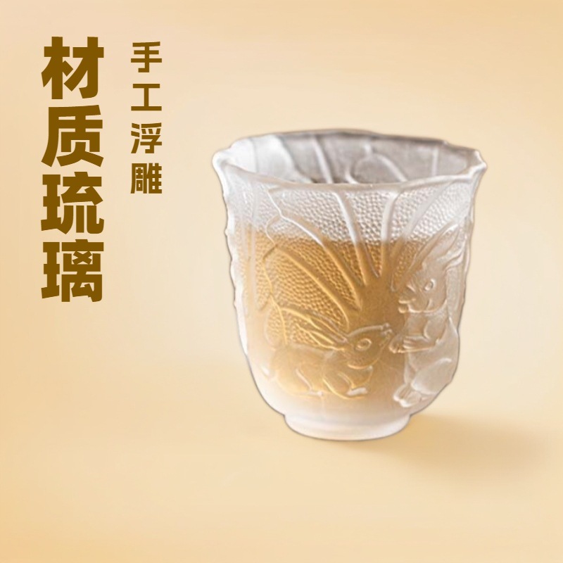 白兎遇百財浮き彫り瑠璃主人杯レトロ国潮風女史茶道具砂杯香りを嗅ぐ茗杯