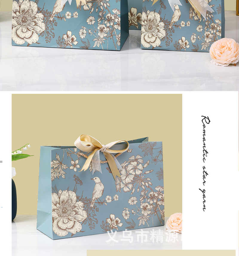 礼品袋玫瑰小花朵礼物伴手礼包装袋纸袋生日手提袋子高级感ins风