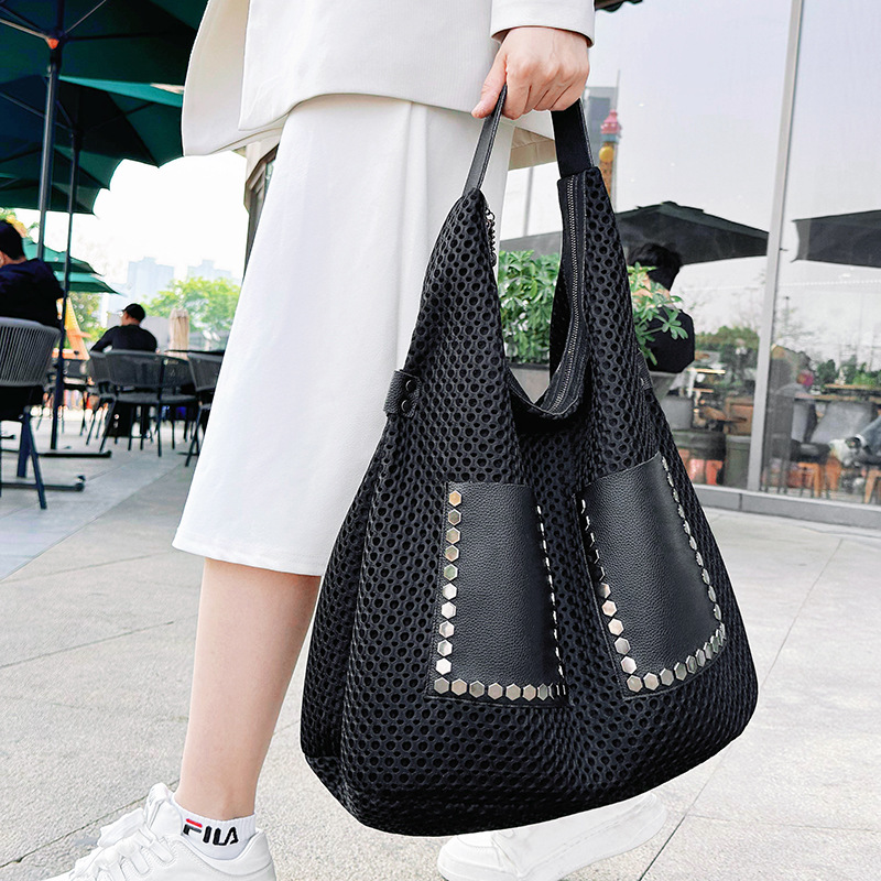 2025 大容量レディースバッグトレンディクールリベットショルダーバッグファッショナブルなシンプルな多用途トートバッグ通勤バックパック