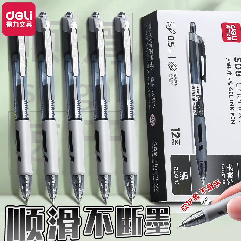 デリ s08 プレスゲルペン黒スムーズ 0.5 黒ペンプレス学生水ペン速乾性連続モモ
