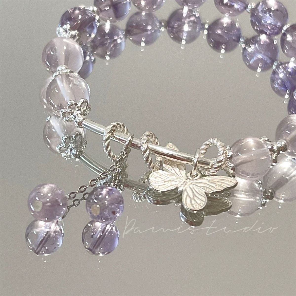 新しいタイプの蝶の転送のブレスレットinsの大衆の設計は紫水晶の手の串をまねて彼女の娘の蜜を送ります。