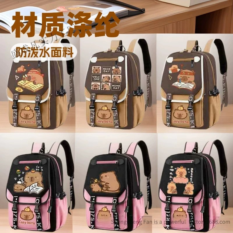 跨境卡皮巴拉书包小学生男女孩轻便卡通水豚大容量护脊儿童双肩包