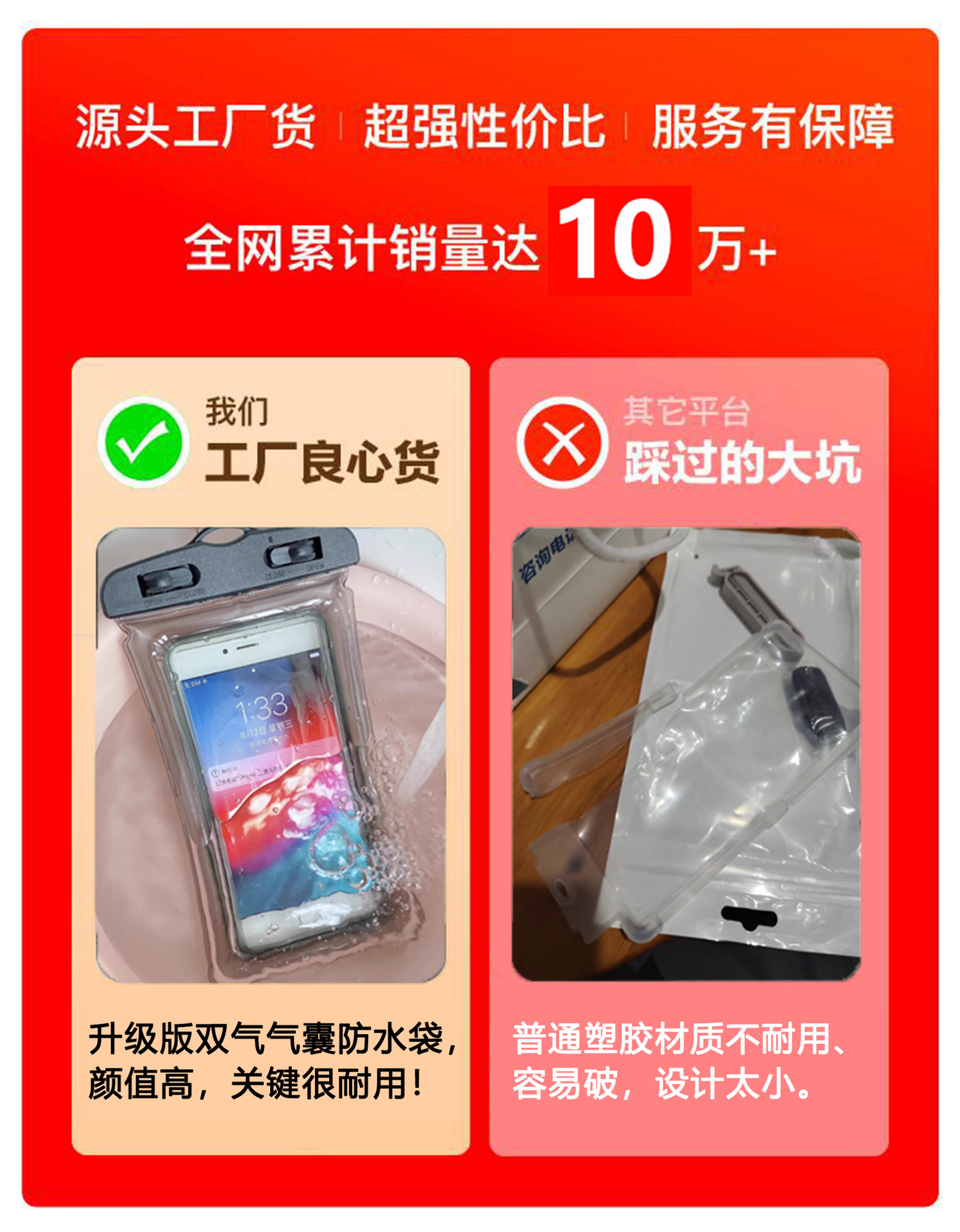 气囊手机防水袋潜水漂流骑车防雨手机防水袋密封海边必备专用现货
