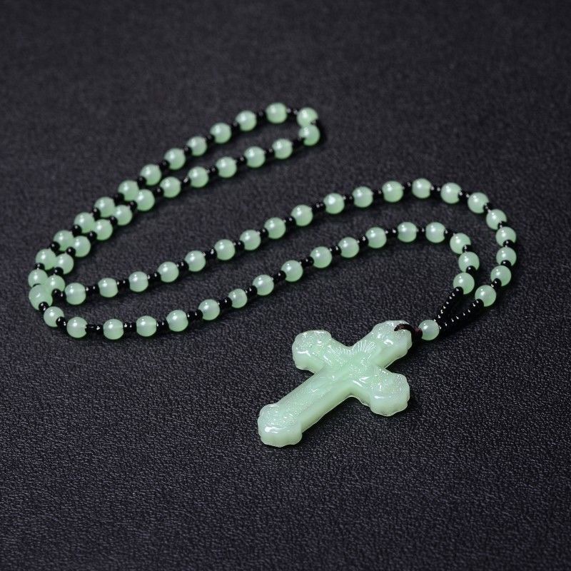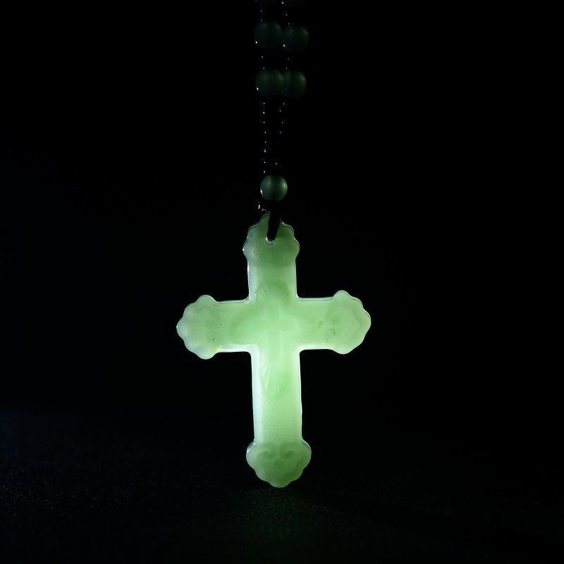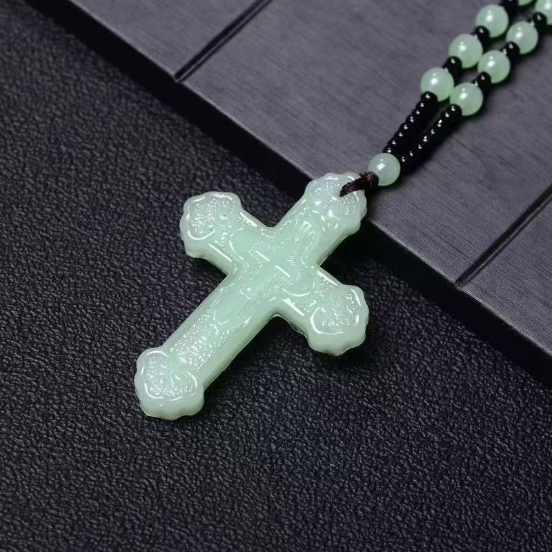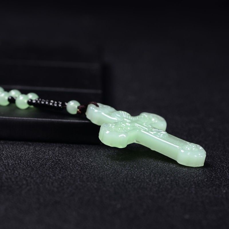 厂家爆款琉璃玻璃仿玉十字架平安扣仿玉绿项链吊坠挂件毛衣链饰品