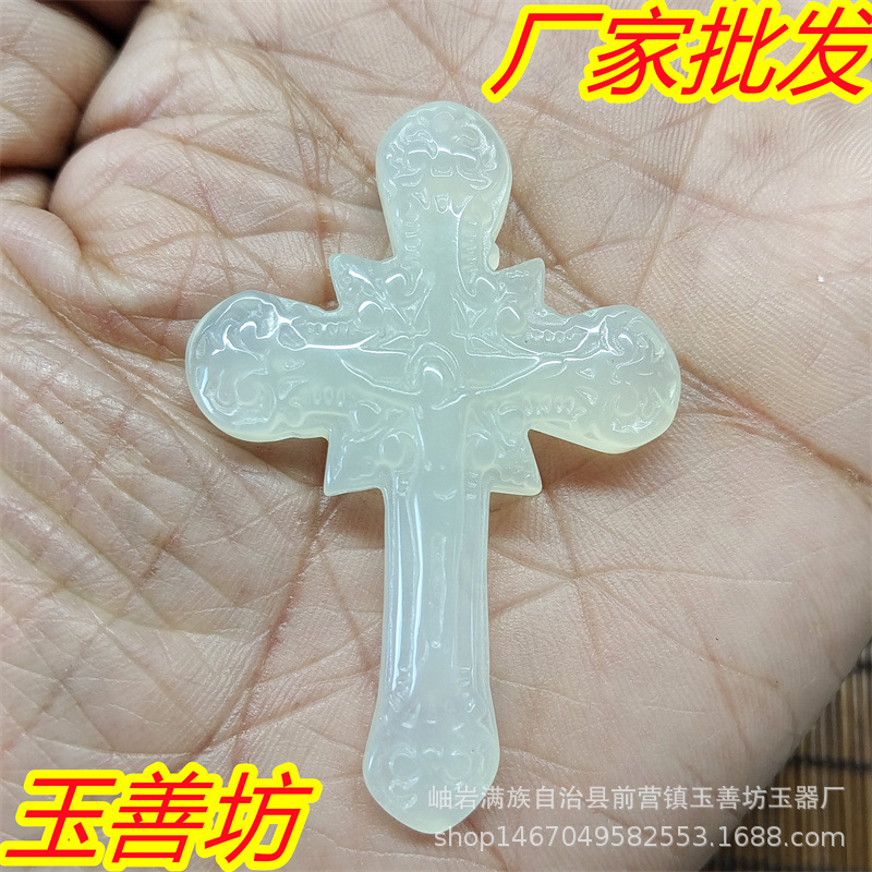山玉ペンダントクロス天然玉器ペンダントメーカー卸売り玉原石彫刻山岩玉A商品プレゼント