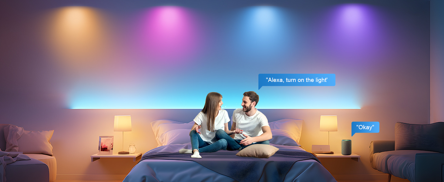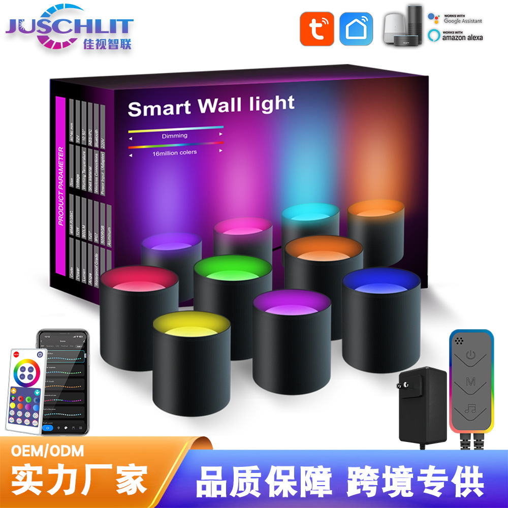 Tuya涂鸦蓝牙智能筒灯Alexa语音控制全彩调光RGBCW谷歌音箱五路灯