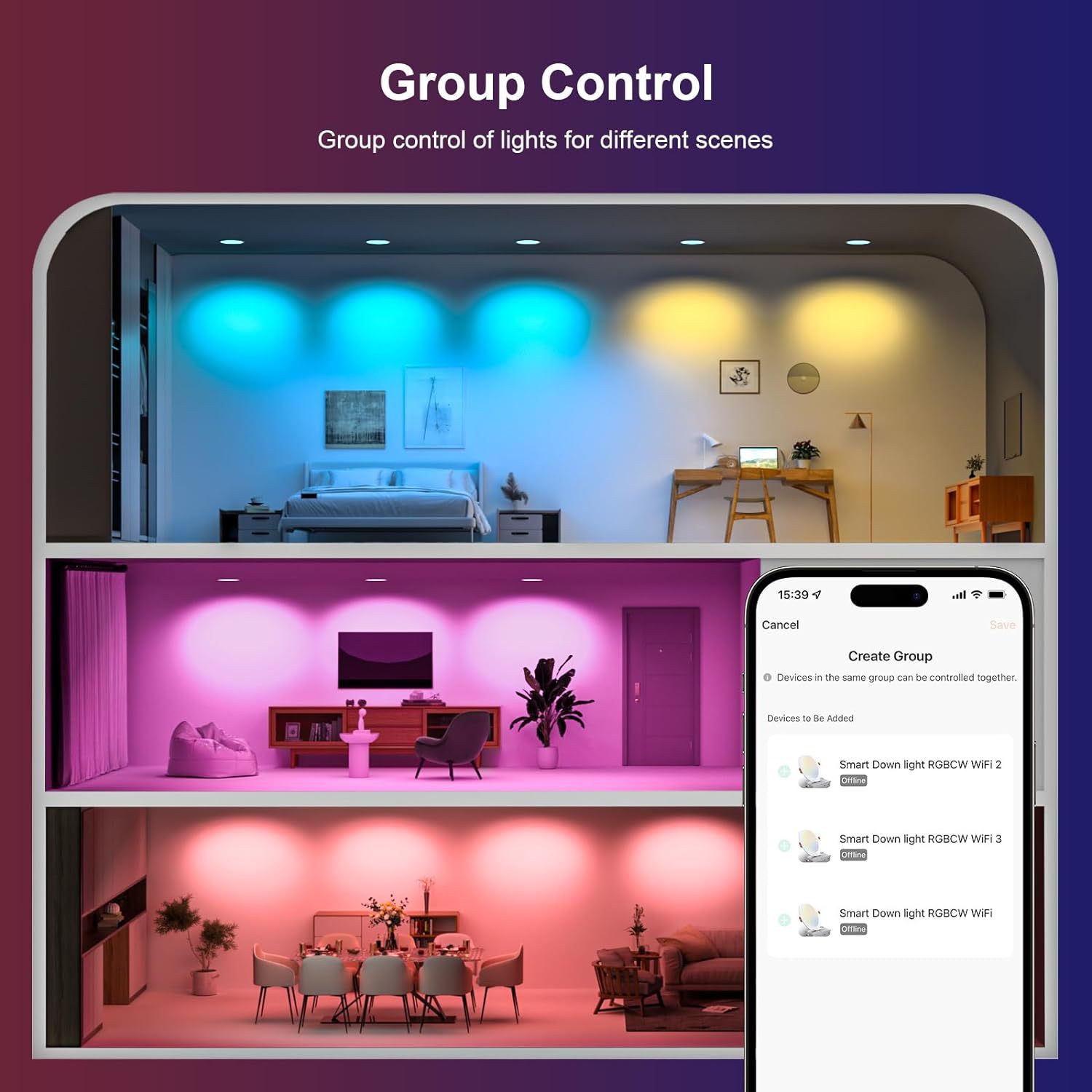 Bluetooth スマートダウンライト Tuya RGBCW フルカラー調光 Alexa 音声/APP 制御工場直接供給 85-265