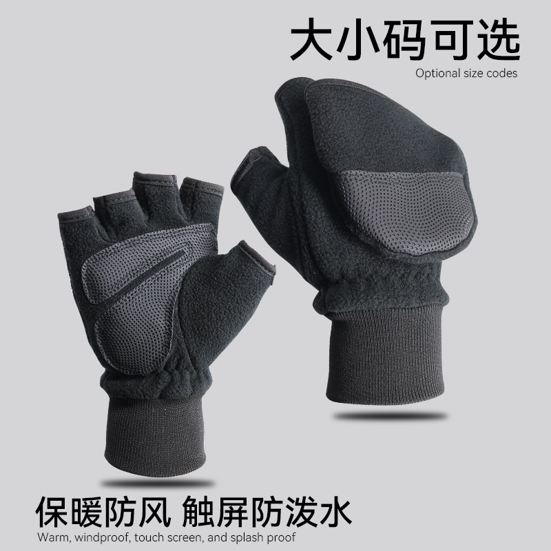 メーカー製 冬用 男女兼用 保温 ハーフフィンガー フリップアップ スポーツ サイクリング タッチスクリーン対応 滑り止め ポーラーフリース グローブ
