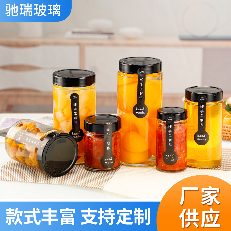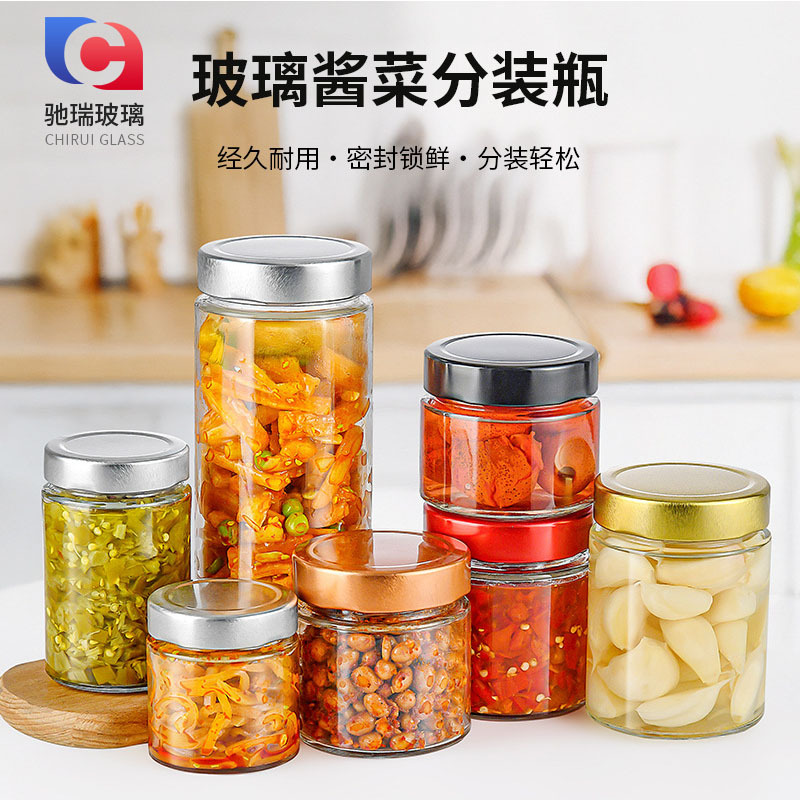 高蓋円形ガラス漬物瓶食品漬物缶詰ガラス分注空瓶蜂蜜唐辛子油貯蔵瓶