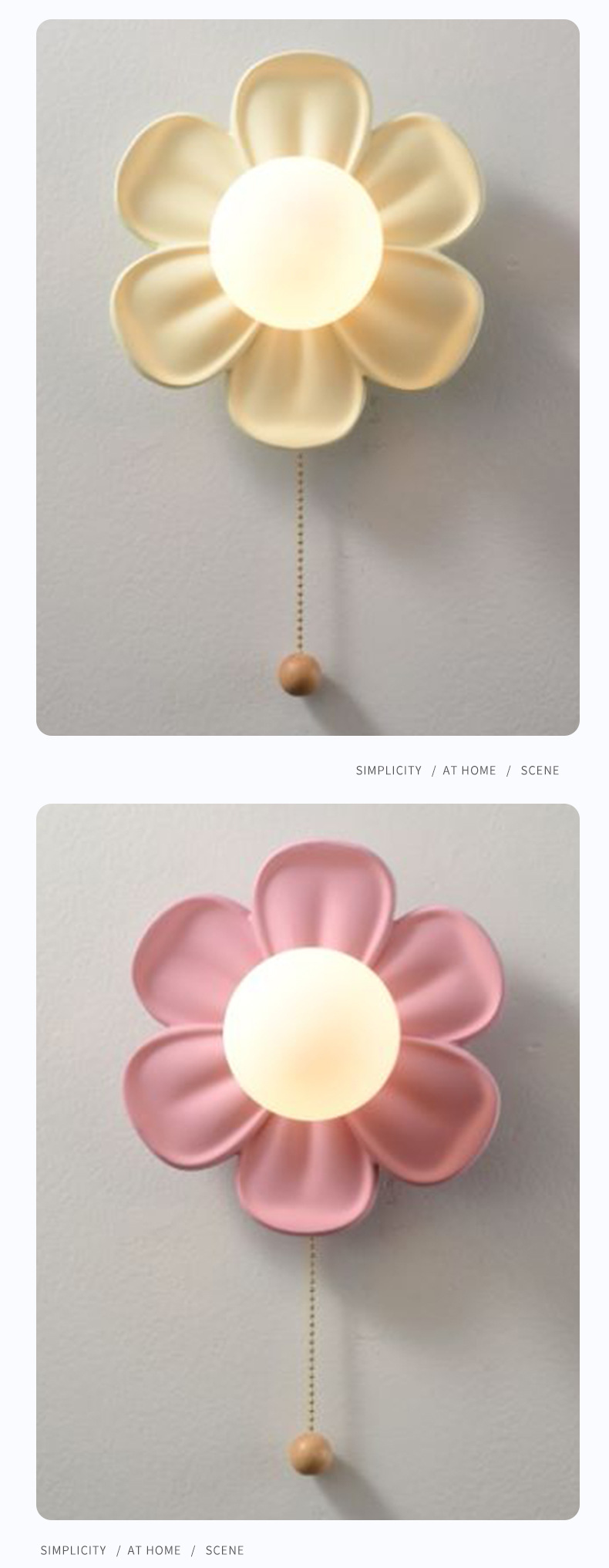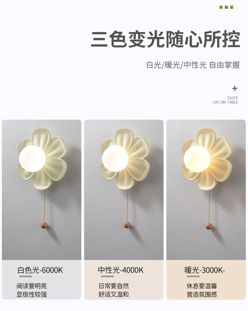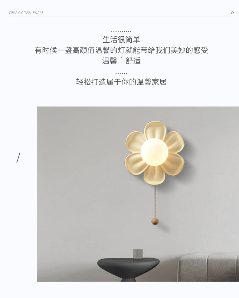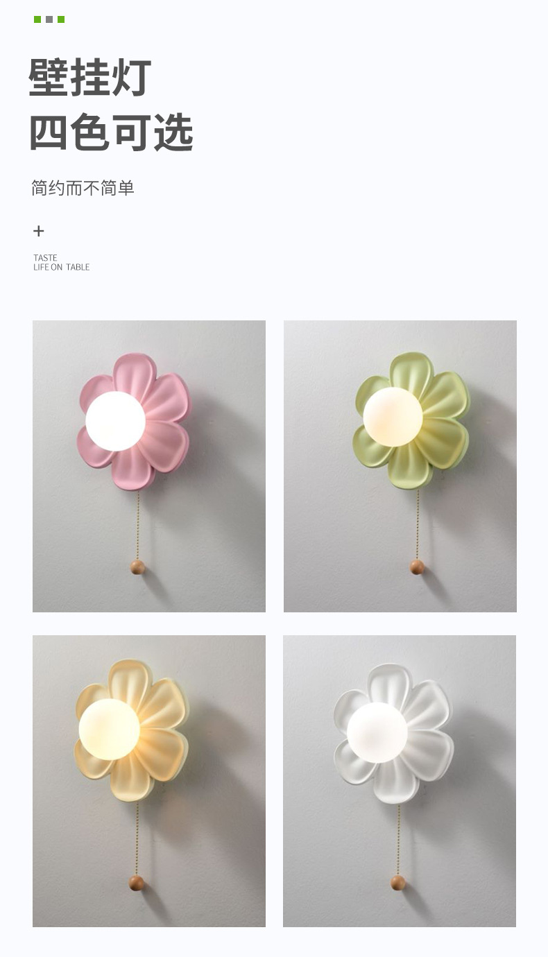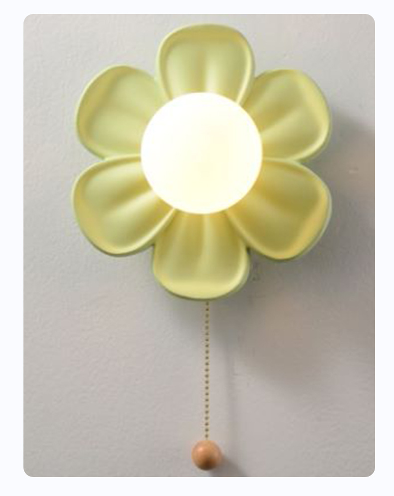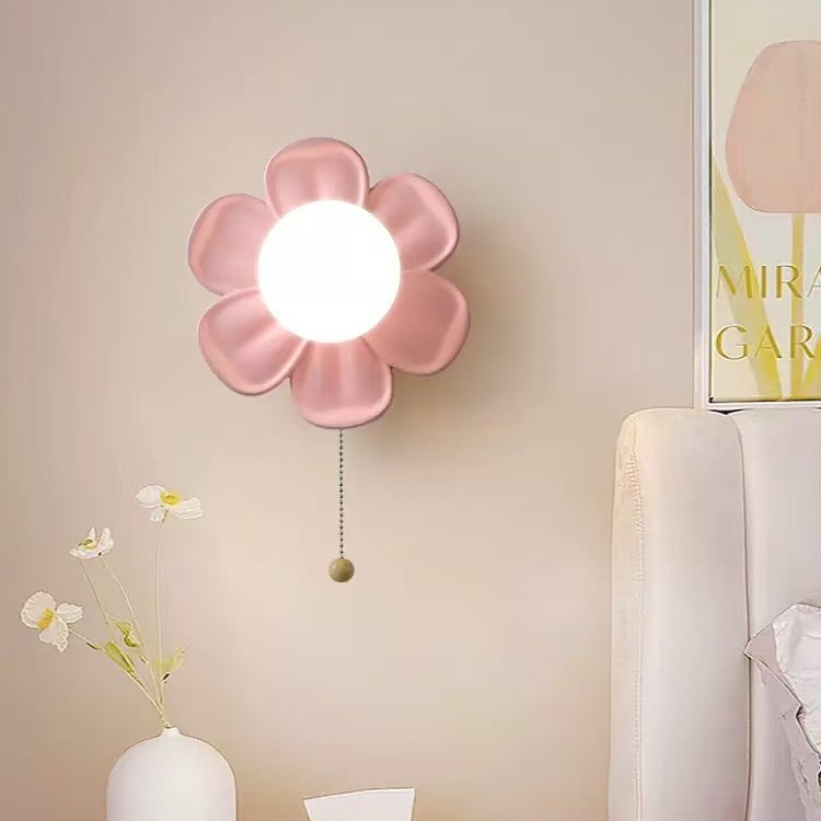 现代简约壁灯花朵壁灯拉线开关奶油风儿童卧室书房床头灯背景墙走