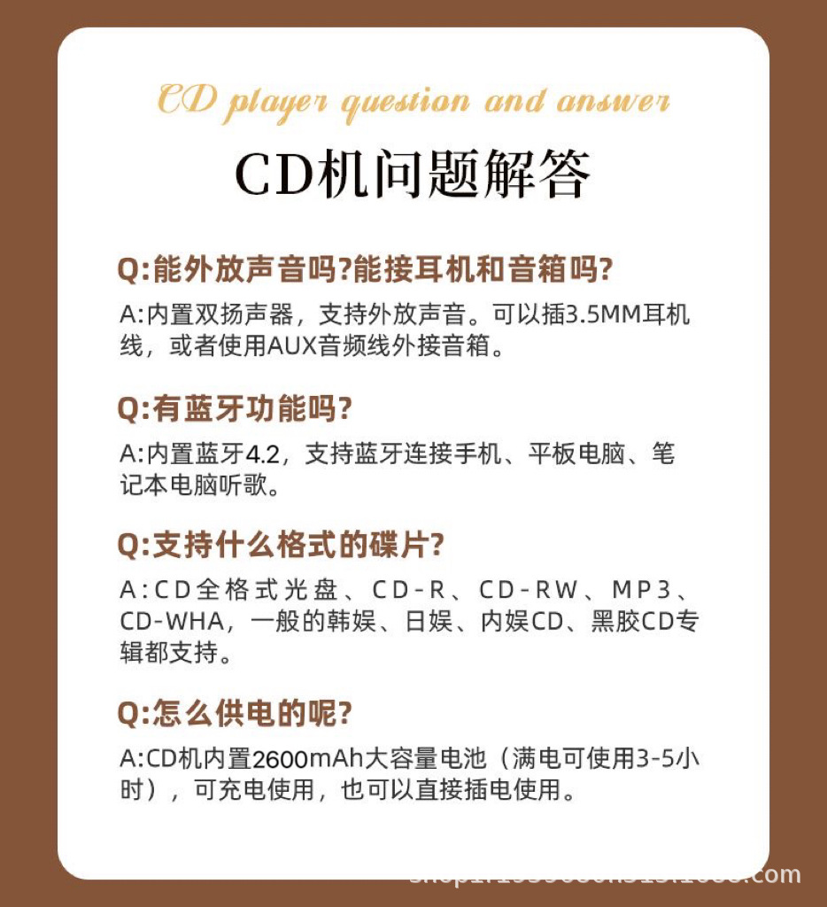 【兼容格式】CD/CD-R/CD-RW/MP3/WHA