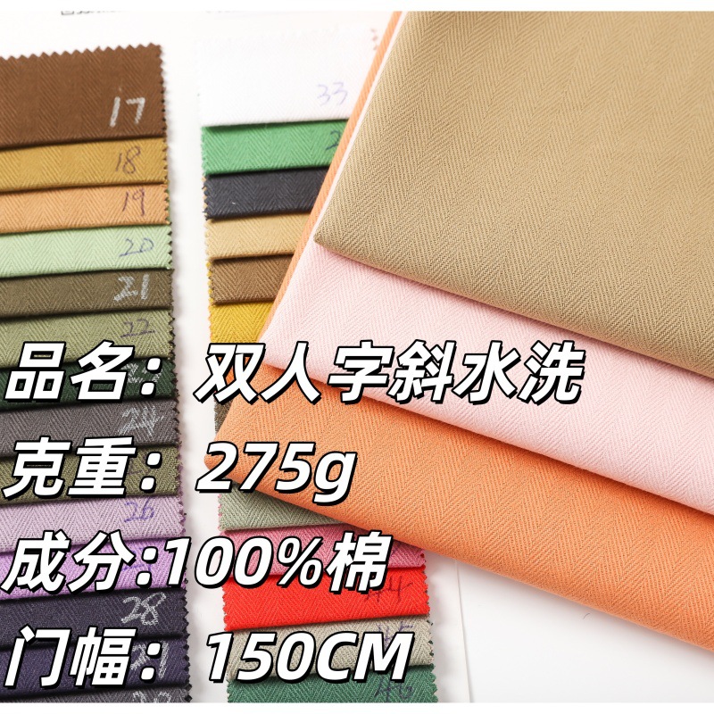 綿100% ダブルツイル ウォッシュドコットン織物 275g 衣料品生地 アウター 作業服 卸売 パッチワーク カラー織り
