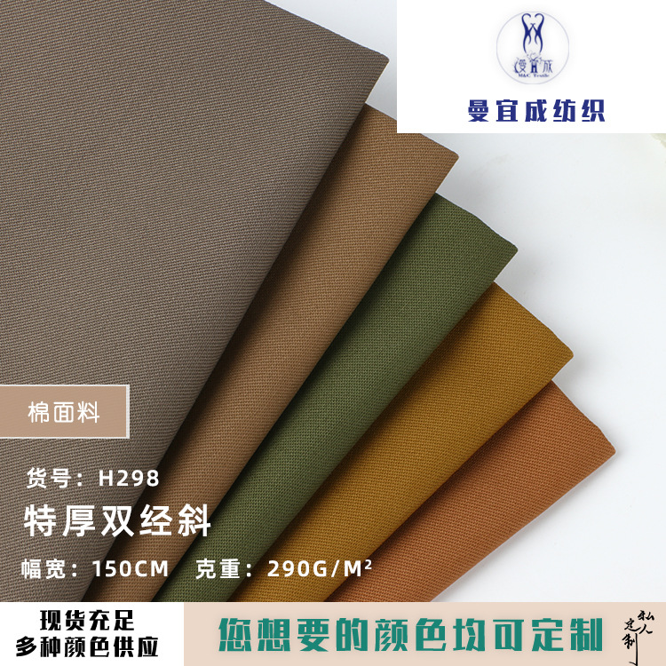 290g特厚双经斜纯棉面料 高密斜纹梭织棉布 全棉休闲裤时装面料