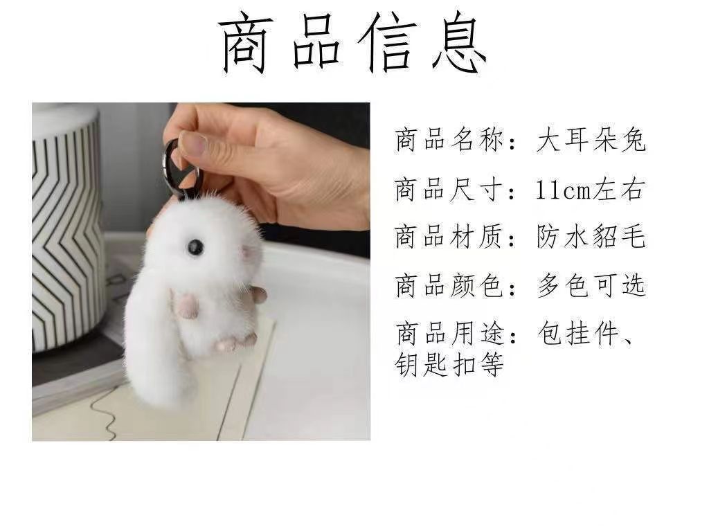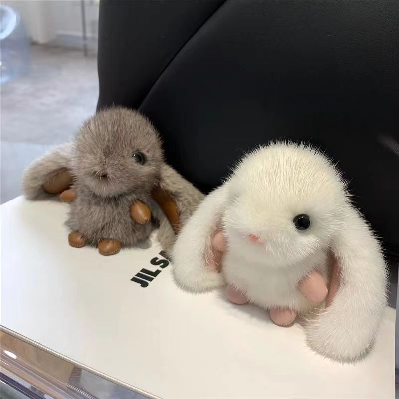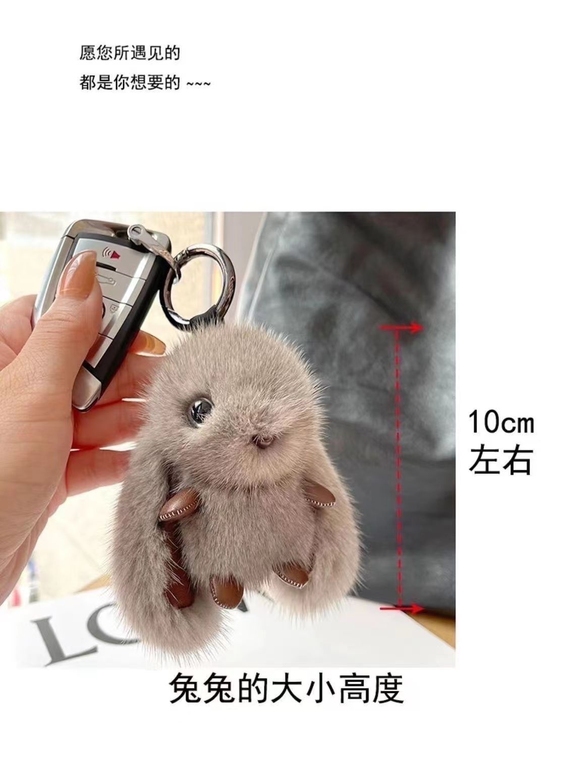 水貂毛绒小兔子汽车钥匙扣挂件毛绒公仔书包包挂饰礼物可爱公仔兔