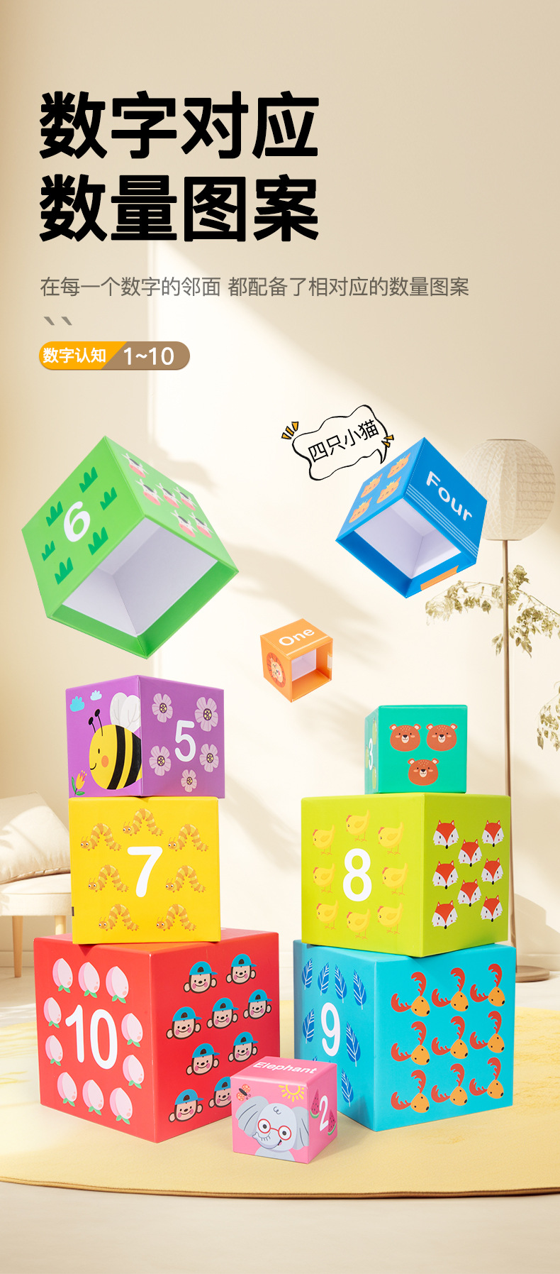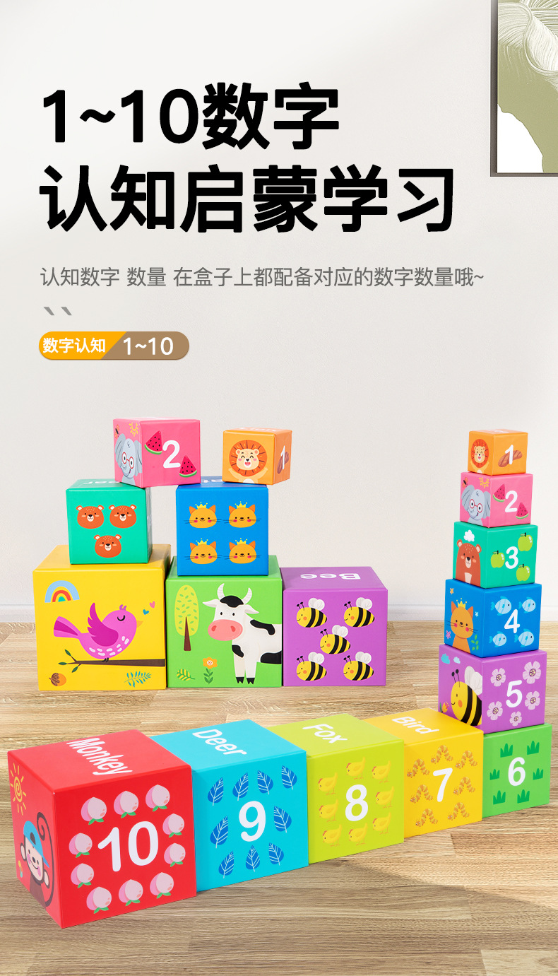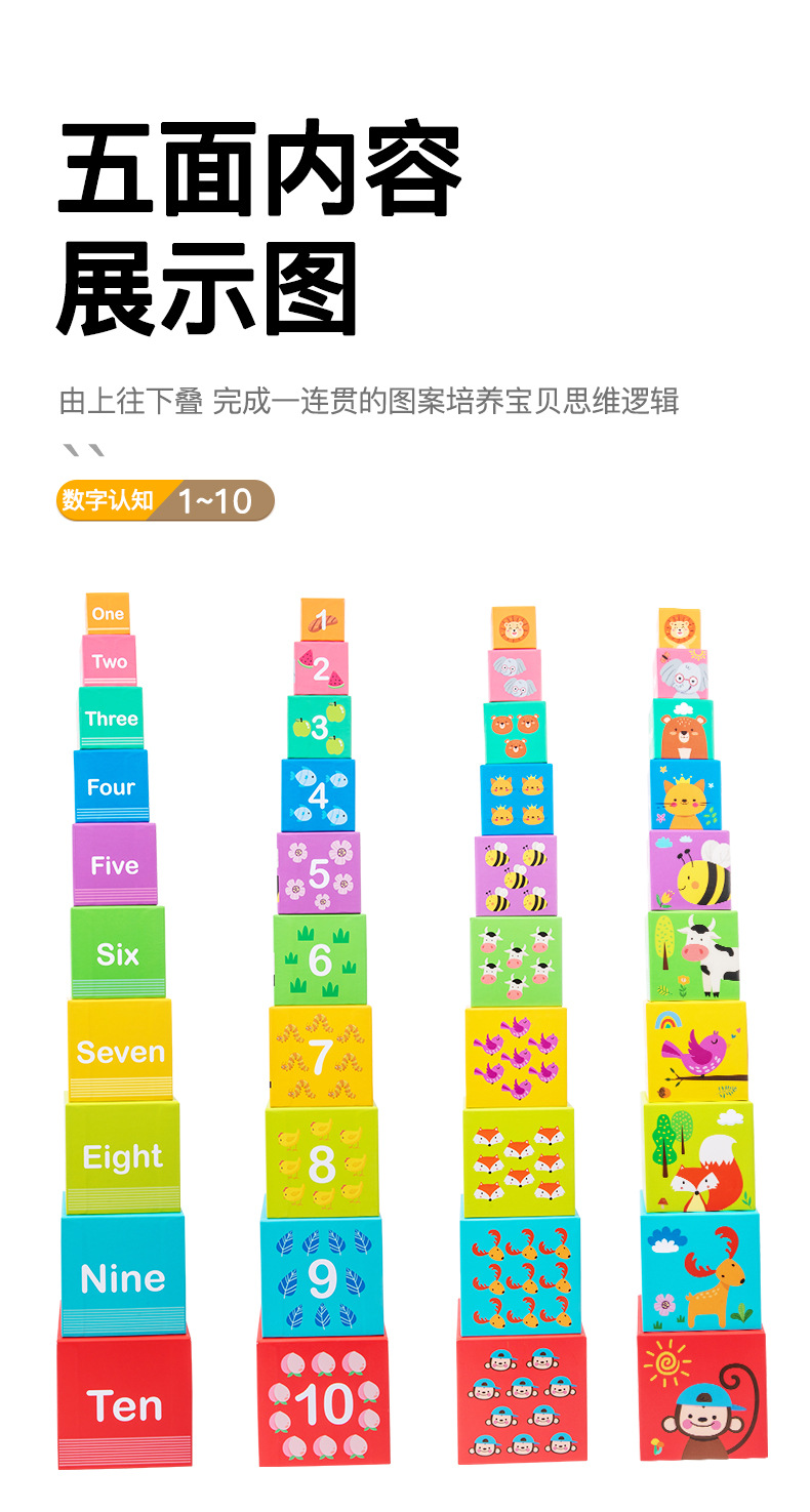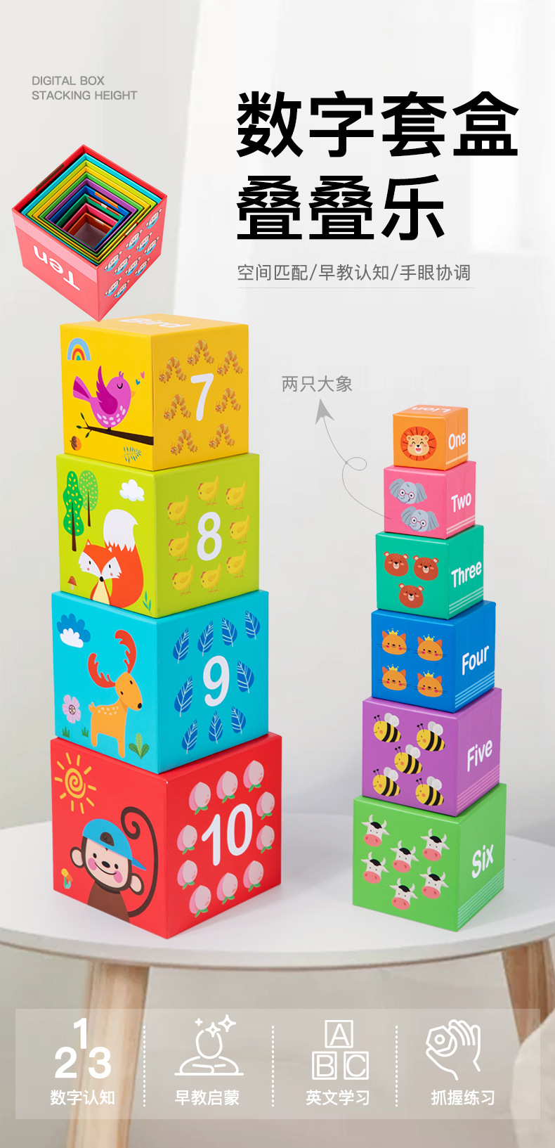 赤ちゃんの子供のおもちゃの数字の箱の積み重ねの楽しみの山の2層の積層の杯の3歳から紙のカバーの赤ちゃんまで早教の益智