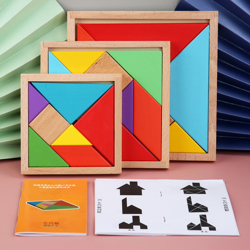 越境児童益知力早教啓蒙玩具木製箱入り七巧板教具開発知力ジグソーパズル