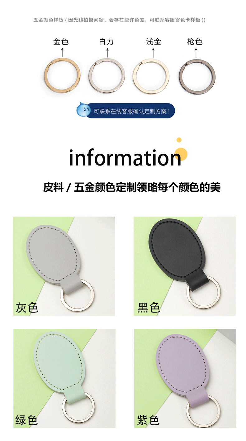 简约皮质圆形钥匙扣 包包钥匙圈挂件 活动小礼品配件可加LOGO广告