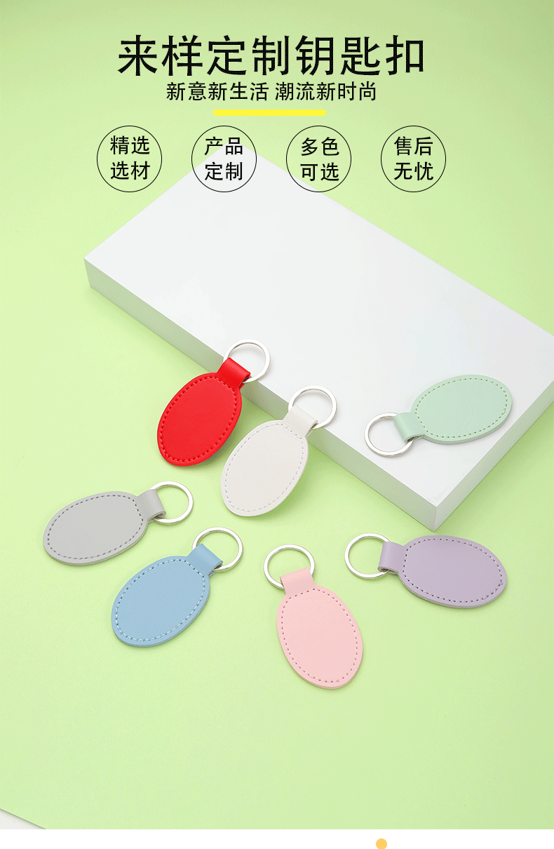 亚马逊PU皮革钥匙扣简约收纳商务汽车包包配件皮质DIY钥匙圈